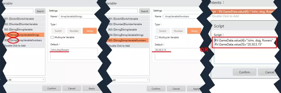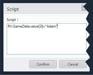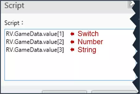 字符串变量: 为其赋予新文本: RV.GameData.value[3] = "亚当"