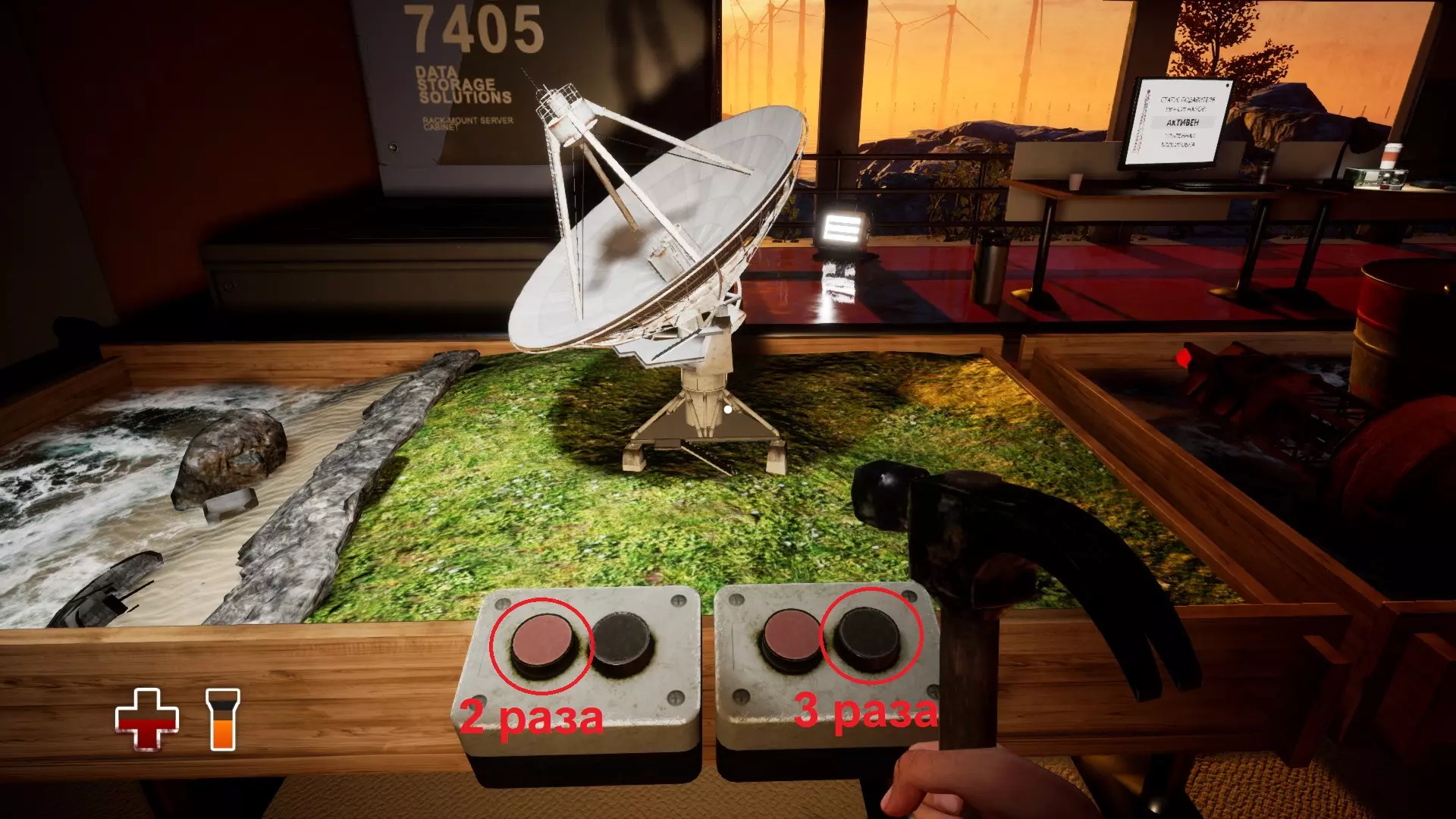 成就【Tuned In】 将卫星天线模型与其真实对应物对准。 第三章:战斗或逃跑。走出洞穴并进入建筑后,在主房间内有一个卫星天线模型,按下按钮:左侧红色按钮按2次,右侧黑色按钮按3次。