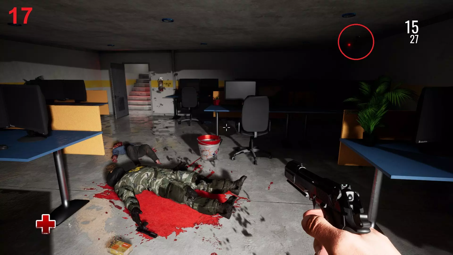 第一章:透过缝隙。 序章。醒来后,收集所有的小鸭子并扔进浴缸,卧室里藏着3只鸭子(在床头柜、五斗柜、衣柜里),客厅里1只鸭子(在五斗柜里),浴缸上1只鸭子,浴缸里1只鸭子。现在把所有小鸭子都塞进马桶(6/10),从厨房拿来4个杯子也塞进马桶(10/10),反复冲水直到解锁成就Flushed Away。 出门。走到大门并打开它们。下到游艇处。登上船并打开门,进入船舱。 前往驾驶室,与收音机互动,转动方向盘,按动操纵杆。离开驾驶室,过一会儿会听到巨大的声响并看到前方的岛屿。……等待…… 第一章:透过缝隙。第一幕 续。在水中时,逆时针转身,会看到水里有一个桶,你需要在整个游戏过程中再次随身携带它。【Well Hydrated 1/3】在标志上方,天花板上有第8个摄像头,站到摄像头下方,用准星瞄准摄像头,点击左键并跳跃,可能需要多次尝试。【Photogenic(8/20)】走到楼梯下方,楼梯的天花板上有第9个摄像头,操作方法与前一个摄像头相同。【Photogenic(9/20)】在楼梯下方打开门,进入后向左走,经过自动售货机,在走廊右侧的天花板上有第10个摄像头。【Photogenic(10/20)】进入右侧房间,爬进竖井并穿过它。走向右侧的门,进入门内,再走向右侧的门,蹲下并从货架下爬过,蹲下并从箱子下爬过,继续前进,绕过箱子,进入门内,向前进入门内,下到着火的停车场。走到第二个火堆处,从右侧的箱子上爬上去,保存游戏,跳过去,跳到卡车和集装箱之间的下方——桶会滚下来并爆炸。前往大门处,按下左侧的按钮,然后跑向左侧的仓库——桶会滚落并爆炸。上楼,进入警卫室并按下按钮。 来到街道,沿着道路走,然后向左走上小径。爬上卡车并翻过栅栏,沿着铁轨向右走然后跳下。 向前走,接着逃离路障,借助蓝色的桶爬上房间,左侧是带格栅的房间。进入右侧的门,走过小桥,来到有通风口的房间并转动通风口。然后尽快返回,游过有格栅的房间。打开门进入后向上走,右侧在托盘后面有个竖井,爬进竖井并一直爬到底。继续前进,爬上托盘后跳过围栏,沿楼梯向上,向左转,进入电梯并转动通风口。 来到街道上,沿着小溪走向房屋。进入房子,梳妆台右上角的抽屉里放着一把手枪,拿起它,梳妆台的其他抽屉和柜子里放着子弹(会有僵尸过来,后面跟着第二个,然后还有两个僵尸)。走到街上。看向天空,那里有很多鸟,你需要用手枪射中其中一只鸟,这很难做到,射击前先存档,要瞄准鸟的前方射击,让子弹能够飞过去并击中鸟。最好选择飞得较低且较近的鸟;向上转动鼠标滚轮以拉近视野;瞄准;按住鼠标左键持续射击;缓慢将准星移至鸟的喙前方。【You Monster】前往左侧的铁栅栏门,射击门锁,向左转,向前走。不要碰到蓝色光束,蹲下并从机枪旁爬过去,机枪可以关闭——关闭电池或射击电池。(两只僵尸)。沿着铁轨往前走,爬进车厢,蹲下并从机枪旁爬过去。 向前走,爬进仓库,通过左侧的梯子爬上房间。第三章:战斗或逃跑。 第三章:战斗或逃跑。↓ 吃掉面包然后躺下。站在马桶上等待爆炸,爬进竖井,向右然后向下。离开房间,在地上拿起手枪,右边的货架上有子弹,而桌子上是你忠实的伙伴——水桶。左侧靠近门的天花板上是第11个相机。[Photogenic(11/20)]向右走,进入观察审讯的房间,前方是第12个相机。[Photogenic(12/20)]返回,进入尸体旁的门,打开门后进入红色走廊。 进入右侧的B门,进去后上楼,(僵尸区域)下方有兔子跑动,进入警卫室,输入“5”解除锁定。回到走廊,沿着右侧走,电梯右边是第13个相机。【拍照达人(13/20)】前往A门(僵尸区域),上楼进入警卫室,解除锁定,在显示器屏幕上点击“重新发送代码”,右侧手机上会出现数字,将其输入到显示器中。返回走廊,走向电梯并呼叫它,上楼。 进入办公室,向前走,在左右两侧门附近的天花板上有第14和15号摄像头。【Photogenic(14-15/20)】进入左侧的门,再进入前方的门,沿楼梯向上,进入灰色的门,继续前进,在进入有尸体的房间之前,右侧角落里的天花板上是第16个摄像头。【Photogenic(16/20)】进入有尸体的房间(僵尸房),右侧黑暗处的天花板上是第17个摄像头。【Photogenic(17/20)】沿楼梯向上走到敞开的门前,向前走到蓝色光芒处(右侧有士兵)。左侧第二个“Arque water”自动售货机,从中取出8瓶水。【Master Water Collector】 向前走并向下跳,一直游到尽头后再次向下跳。找到发电机,进入左侧通道,在通道尽头拿起油桶,返回发电机处,将油桶放置在发电机上。按下电梯按钮,进入电梯后按下按钮,踩着石头向上爬。继续前进,大门是关闭的,拿起小石子,通过洞口扔向按钮。[Well Hydrated 2/3] 继续前进,进入士兵的储藏室,暂时把水桶留在这里,前往左侧走廊(士兵处),向前走,进入有电脑的房间,在房间中间,天花板上是第18个摄像头。[Photogenic(18/20)] 桌上有门禁卡,拿起它,返回储藏室,打开右侧的门,别忘了带上水桶,下楼并打开门。 蹲下进入房间,靠近机枪并射击它的两个发电机,继续前进。在第三个办公室里有第三台“Arque water”自动售货机,从里面取出最后的5瓶水。【Well Hydrated 3/3】就在自动售货机旁边,天花板上是第19个监控摄像头。【Photogenic(19/20)】进入有投影仪的房间,右边桌子上有一张钥匙卡,拿起卡片,打开门,走下楼梯并打开门。进入后,左边桌子上有12个咖啡杯,把它们从桌子上扫下去。【咖啡师】 尸体旁有SG钥匙卡,用它打开左侧的门,进入后从地上捡起手电筒,向左转进入带电的房间,再进