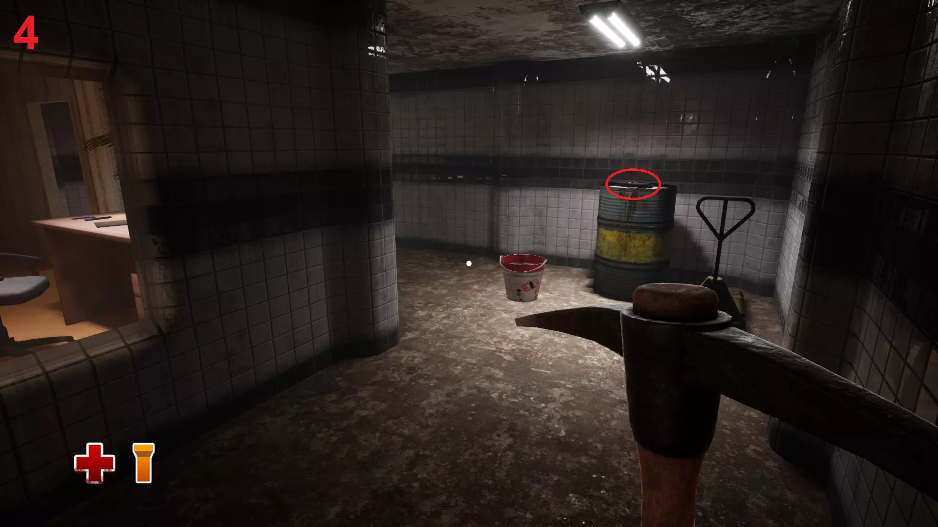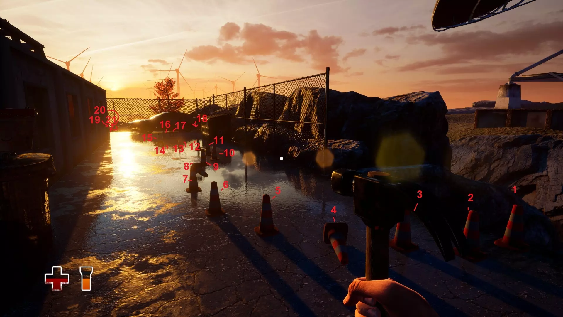 绊倒隐患 通过制造滑倒隐患来消除绊倒隐患。 第三章。战斗或逃跑。从洞穴出来后,沿着岸边左侧走,向上走到建筑物处。右侧栅栏旁有一个垃圾桶,旁边放着橙色锥形桶,将所有锥形桶(21个)放入垃圾桶。