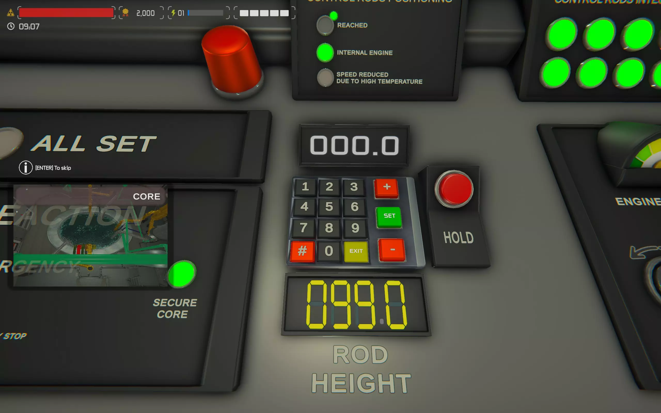 前往核心控制面板,将控制棒高度设置为0。