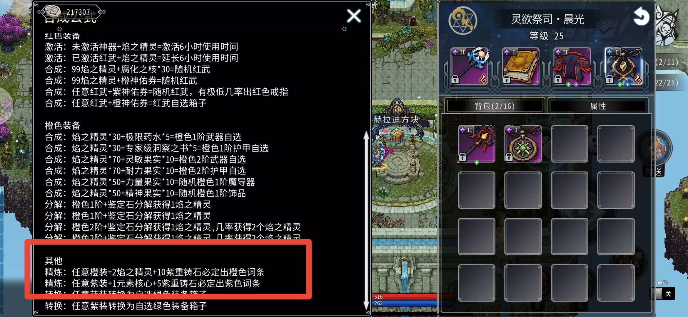 绿色和蓝色装备使用【娴熟级重铸石(蓝石头)】,紫色和橙色装备使用【专家级重铸石(紫石头)】。过渡用的装备可在铁匠处用重铸石简单洗练后凑合用。若遇到特别极品的紫色装备(例如武器、衣服的221词条,饰品、魔导的121词条),可前往【赫拉迪方块】,使用元素核心和紫重铸石洗练极品词条。极品橙色装备则需用精灵和紫重铸石洗练极品词条。