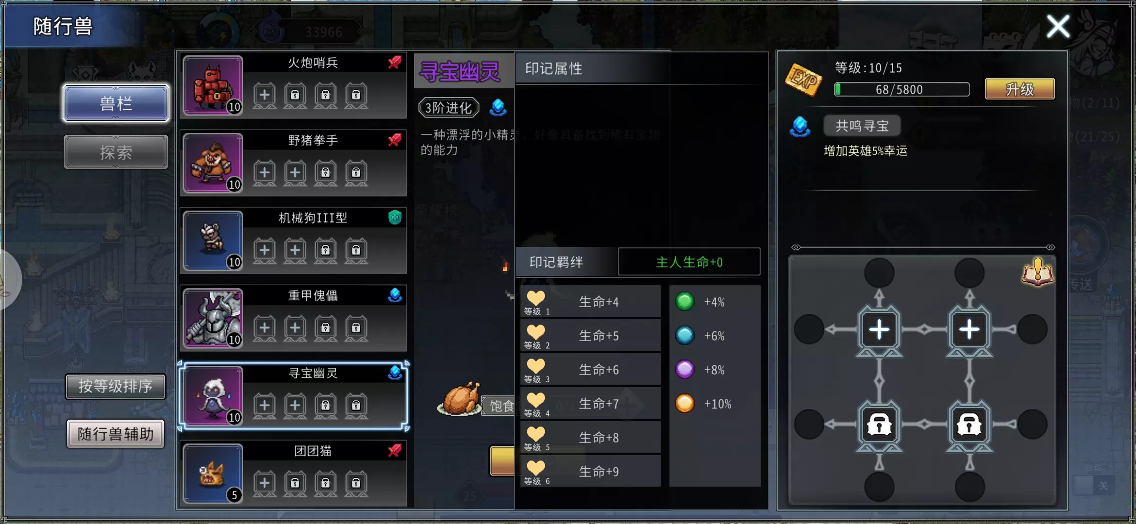 寻宝:技能增加幸运值,印记增加生命值