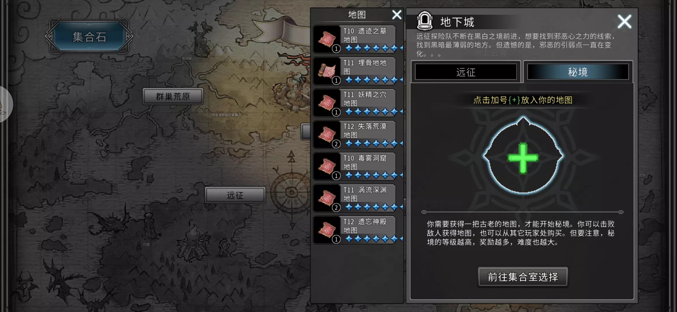 Q17.秘境地图有什么用?怎么用? A17.秘境地图可以通过击败精英元素怪、世界首领以及终结首领掉落,分为t10、t11、t12三种品质,对应的死亡惩罚也不同。秘境有较高概率掉落果实、极品饰品和魔导器。在【远征】处可使用秘境地图。t10通常很少有人挑战,如果不缺果实可以直接丢弃。t11和t12是任务地图,完成任务后t11也可以丢弃。t12有概率产出紫色极品魔导器和饰品,因此可以留存并邀请他人组队挑战。小贴士:只要点击进入的是未满人的界面,即使实际已满人也能进入,但超过20人就无法进入,所以可以利用这一点卡极限20人进图。
