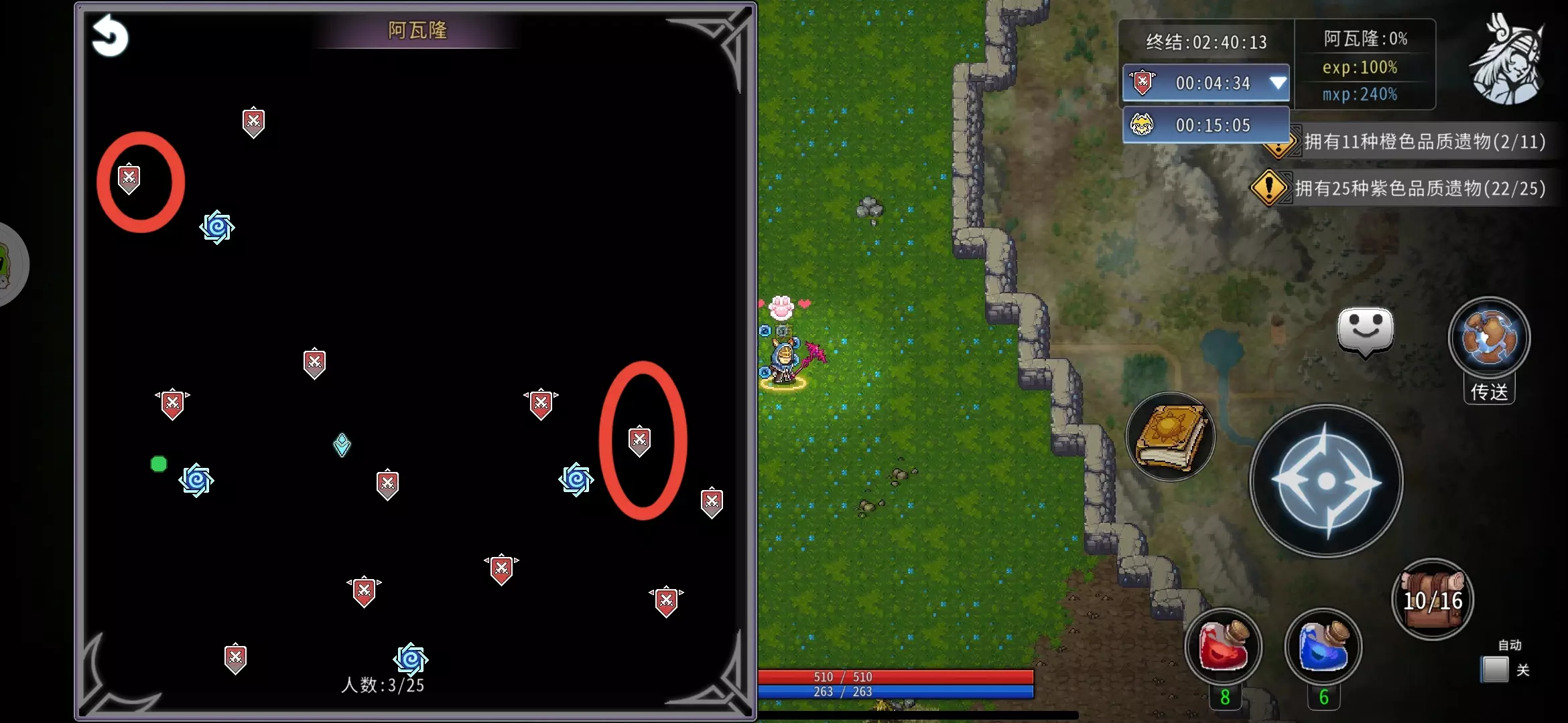 Q7.手机和电脑可以账号互通吗?我iOS怎么下载? A7.可以的,但只有手机Qoo和电脑Steam的账号才可以互通。其他Tap/好游/WGM均不行。iOS使用港澳台账号即可在应用商店下载。 Q8.电脑端没有自动攻击吗? A8.有的。电脑端Z键辅助瞄准,X键自动攻击,C键召唤右上角界面,B键背包,12345对应发表情。 Q9.果实、蓝书、极限药水有什么用?在哪里获得? A9.在前期,果实和蓝书还有药水全都用来点天赋,角色天赋需求果实、蓝书和极限药水,赛季天赋需求大量蓝书和20瓶极限药水(点秒回城需要)。 9.1果实获取途径: ①宠物派遣第一个地点,最高级奖励每日8个自选果实。9.2蓝书获取途径: ①完成每日任务的150活跃度宝箱。(主要来源) ②每日挑战任务。(主要来源) ③打t9及以上前哨有概率掉落,打元素、终结均有概率掉落。9.3极限药水获取途径: ①每日挑战任务。 ②击败终结怪物有概率掉落。 ③交易行购买。(前期药水价格较高,非付费玩家不推荐) ④主城下方怪物商人处购买。(魂商店刷到建议购买,银币商店根据个人情况选择,通常不推荐) ⑤任务栏中完成成长之路的宝箱有时会赠送。(效果有限) ⑥战令升级奖励。 ⑦兑换码。(随机获取) ⑧宠物派遣有小概率获得。Q10.15级后如何升级? A10.升级你对应角色天赋中的【等级上限】,最高可到25级。