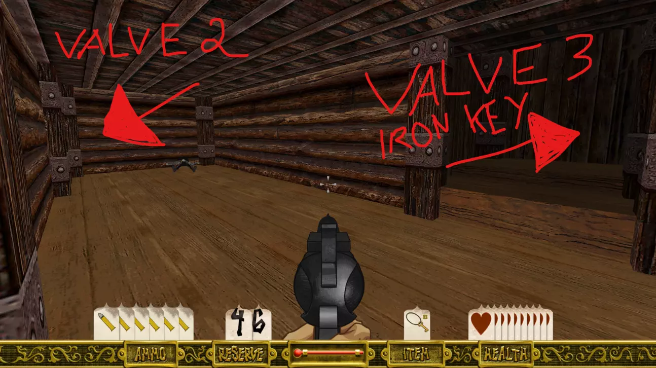 面朝水池或中央区域,向右转,沿着走廊和前方的房间前进。左侧会有一扇通往储藏室的门(该房间内还包含本关卡的第二个秘密),继续走到尽头会看到一条水渠。最左侧有一个需要转动的阀门或轮子,转动它会打开通往中央水池区域的闸门。通过原路或附近新打开的闸门返回刚才的房间。 第二部分