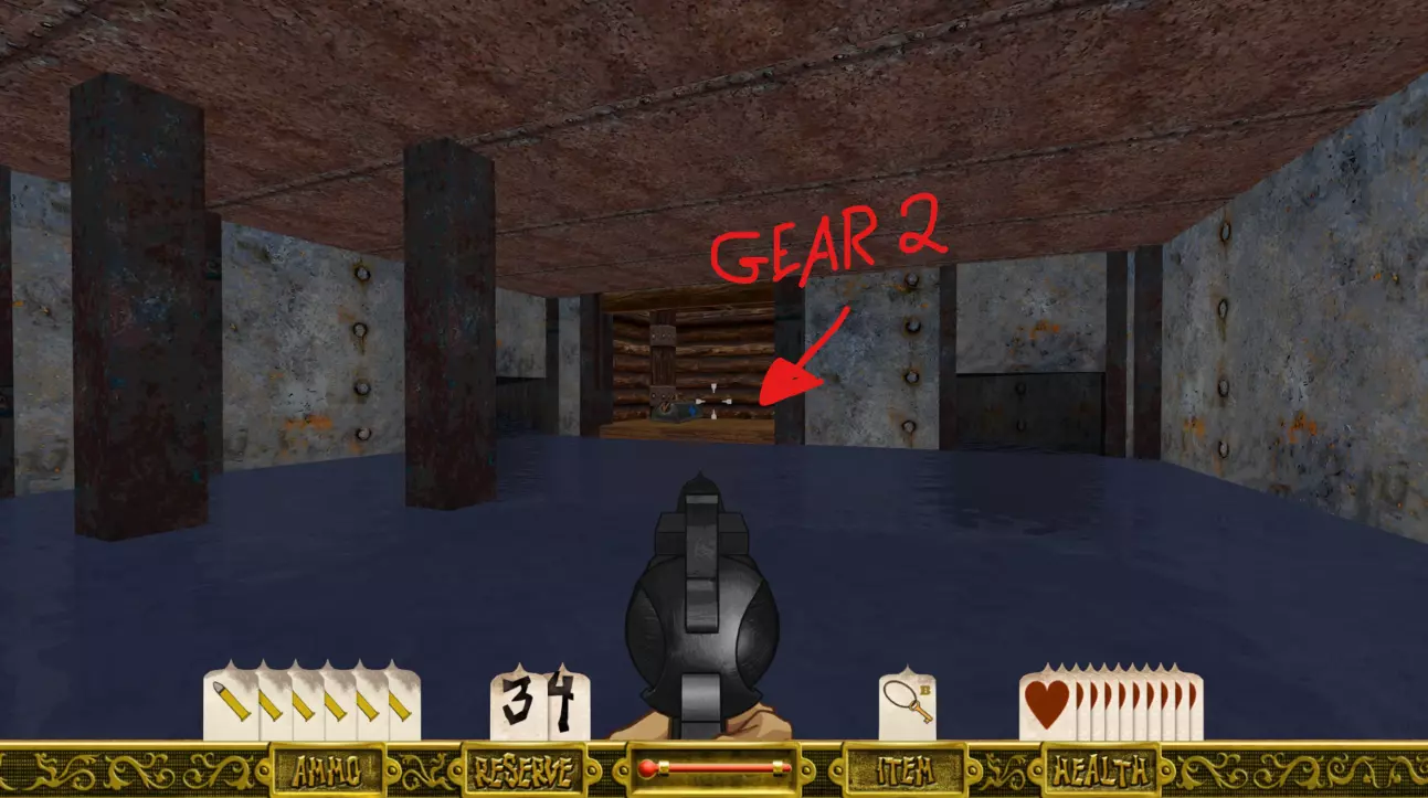 回到水中,当你回到那个巨大的粉色房间后,游过另一个敞开的入口。你会立刻注意到墙上的黄黑相间开关。暂时不要触碰任何开关,只需记住它们通过控制水闸的开启和关闭来改变水流方向。相反,顺着水流前进,寻找右侧带有木质墙壁的开口(如果需要,务必按住 sprint 键来对抗水流)。尝试穿过这个开口,来到另一侧有运河的房间。站在边缘,向左看,你会看到一个脏粉色的水闸以及上方的一个黄黑相间开关。要记住,这些开关可以通过射击来激活。这个机关尤其有时间限制,所以一旦激活,你有2-3秒的时间,之后它就会重置。准备好后,射击水闸上方的开关,然后迅速冲过去,在它关闭之前通过。前方会有一个木制平台,你可以跳上去,沿着它走就能找到你刚穿过的水闸上方的开关。在这里,你会找到齿轮室的第一个齿轮。跳回水中(蹲在边缘时射击开关,然后跳过打开的水闸),让水流带你去往另一个方向。你会被冲进一个有多个入口的房间,里面有一个壁龛,壁龛里有一个医疗包和第二个齿轮。
