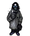 枪械商人,3级人类 生命值:120,耐力:10 攻击力:15,防御力:4,弹道:15,子弹防御:4,敏捷:8,幸运:10 物品:军用大衣(100%),军用头盔(100%),战斗匕首(100%) 弱点:【穿刺】【子弹】【破甲】【血肉】【暗影】