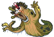 蠕动的弗雷德,等级5 绘画 生命值:120,耐力:60 攻击力:20,防御力:1,球:20,公牛防御:2,敏捷:20,运气:10 弱点:【火焰】【酸】 免疫:【粉碎】