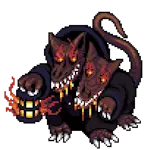 大老鼠,等级1 老鼠 生命值:24,耐力:1 攻击力:14,防御力:0,球:0,公牛防御:0,敏捷:12,幸运:10 物品:老鼠尾巴腰带(6%),老鼠尾巴(50%),奶酪块(6%) 弱点:【粉碎】 抗性:【暗影】