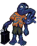 鼻涕虫人,等级7 诅咒状态 生命值:420,耐力值:50 攻击力:60,防御力:0,球技:40,公牛防御:0,敏捷:5,幸运:15 物品:管道工具(50%)