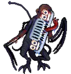 狞笑野兽,11级 诅咒 生命值:350,耐力:50 攻击:25,防御:4,球:10,公牛防御:0,敏捷:4,幸运:5 弱点:【挥砍】【穿刺】【子弹】【寒冷】 抗性:【粉碎】 免疫:【血肉】