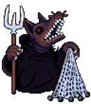 老样子丹,11级怪物 生命值:240,耐力:10 攻击力:25,防御力:2,球系:25,公牛防御:2,敏捷:20,幸运:15 物品:塑料手套(100%),厨师刀(100%) 弱点:【穿刺】【子弹】【装甲穿透】【肉体】【暗影】