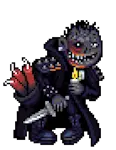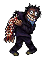 哥特族,6级人类 生命值:300,耐力:20 攻击力:15,防御力:2,球类技能:4,抗球类:2,敏捷:20,幸运:10 物品:风衣(100%),塑胶手套(100%),厨师刀(100%) 弱点:【穿刺】【子弹】【破甲】【血肉】【暗影】 备注:无法死亡。1回合后转变为蒙哥马利和萨里亚。