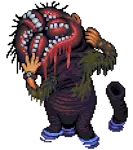 蠕虫头(逃跑型),7级变异体 生命值:480,耐力:8 攻击:10,防御:10,球体:10,公牛防御:10,敏捷:10,幸运:10 弱点:【挥砍】【火焰】【酸液】 抗性:【血肉】 备注:若3回合内未被击败则会逃跑。使用作弊/测试时,将在3回合后导致游戏结束,类似与感染的尤金战斗的机制。