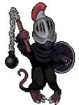 鼠王,11级 诅咒 生命值:720,耐力:12 攻击力:42,防御力:4,球攻击力:42,球防御力:4,敏捷:15,幸运:10 物品:污秽戒指(3%),巨鼠颅骨(25%) 弱点:【粉碎】 抗性:【暗影】 备注:生锈王冠曾经是100%掉落率的常规物品,而现在只有在战斗后下跪才会获得。