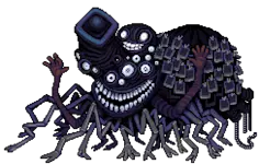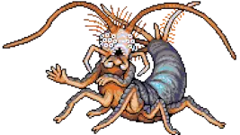 巨型蟑螂,13级昆虫 生命值:800,耐力:20 攻击:60,防御:6,球:40,公牛防御:5,敏捷:30,幸运:10 物品:治疗喷雾(25%),剩饭(50%),腐烂剩饭(50%) 弱点:【粉碎】【火焰】【酸】 抗性:【暗影】 楼层2