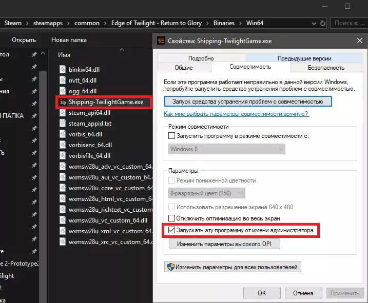 方法2 右键点击Shipping-TwilightGame.exe→属性→兼容性→以管理员身份运行→应用→确定