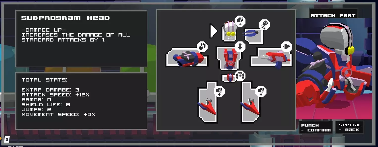 技能 技能在锦标赛中的实用性 免责声明:个人观点 可放置类技能 地雷 - 不是很好用,炸弹会在你脚下生成,你自己也会受到影响。你比对手更容易被击飞,所以这个技能很可能会让你死得比对手还多。不过,当你很难击飞敌人时,它可能会派上用场。放置它,让敌人触发,然后跑开。造成20点伤害 毒地雷 - 比上面那个好用,因为它不会影响到你。可以用来耍些“鸡贼”战术。造成5点伤害+8秒内36点持续伤害(总计41点) 墙壁 - 实际上比预期的更有用。如果将AI放置在舞台边缘,它们通常无法返回,而且大多数情况下,它们碰到边缘后会进行墙跳,最终导致死亡(没有恢复能力的对手)。 召唤物: 炸弹小队(Kachook):体型小,会四处走动,直到爆炸或被击杀后爆炸。问题是你也会受到这些炸弹的影响……持续30秒。 守卫(螃蟹):这只螃蟹很不错,能暂时吸引敌人的注意力,会使用速射和上勾拳。同样持续30秒。 士兵:和螃蟹类似,但装备了冲击波枪,持续30秒。 克隆体:比上面两个稍好,因为它会复制你的动作。但只持续10秒,所以作为干扰效果不太好。 射击物: 冲击波枪:我讨厌它,而且敌人还能反弹它。5点伤害 速射 - 我喜欢它,敌人无法格挡,能覆盖整个舞台并带有一定扩散。造成2×8点伤害(总计16点) 迷你机枪 - 非常有用,但后坐力在某些关卡中可能使其变得毫无价值。造成2×20点伤害(总计40点) 狙击枪 - 我真希望它能更好用一些,现在完全没用。造成8点伤害 导弹 - 一种追踪导弹,注意敌人可以反弹它们。发射效果不太好,而且爆炸也会伤到你。造成10点伤害 大型追踪火箭 - 和上面的导弹类似,但更糟糕,因为爆炸范围更大。造成15点伤害 近距离招式 上勾拳 - 向上攻击时的优秀终结技,速度也相当快。造成16点伤害 铲子 - 不如上勾拳好用,但速度更快。说实话,你可能只会用普通攻击,1伤害 猛击 - 一种向下的攻击,我真的不怎么用这个,因为它的击飞效果很奇怪,15伤害 兆字节猛击 - 将对手向侧面击飞,非常强力,但蓄力时间慢,击中后硬直更糟,25伤害 旋踢 - 向侧面击飞,不如上面那个强力,但速度稍快,18伤害 T攻击 - 向侧面击飞,威力较弱但速度更快,15伤害 挥砍 - 不怎么样,但能将敌人向侧面击飞,速度相当快,攻击范围也还可以,12伤害 病毒挥砍 - 几乎失去了击飞效果,转而造成中毒,中毒持续时间比我的短4+16,持续4秒(总计20) 狂怒轴心:向前小幅移动并进行数次小幅伤害攻击。由于大多数敌人会格挡此技能或在之后直接攻击你,所以它相当无用。4×6伤害(总计24) 位移类技能 横斩冲刺:向侧面短距离冲刺,造成少量伤害并将敌人向上或向下击飞。在关卡中用于终结跨越间隙的敌人效果很好,但作为恢复技能则表现一般。8伤害 旋风:向侧面旋转并对敌人造成伤害。如果你被击飞到较远但非向下的位置,这个技能很有用。3×8伤害(总计24) 钻头冲刺:向任意方向短距离钻探,造成少量伤害并破坏方块。我不太推荐使用这个技能,因为不平整的地形会使战斗变得困难,但在连招中使用效果很棒。2x4伤害(8) 传送 - 将你向目标方向传送,你会直接传送到终点,因此除非瞄准精准,否则对进攻没什么帮助。12伤害 上挑 - 将你向上挑起,但你可以轻微控制方向,这使得它在回到台上或向侧面移动时很有用。8伤害 飞行 - 对于回到舞台非常好用,但会让你完全暴露 你不会用到的东西 红色病毒免疫 - 锦标赛模式中没有红色毒气 基础攻击伤害表 如果我没弄错的话,你最多可以装备5个伤害提升部件。每个部件能使基础攻击提升1点伤害。地面连击初始为4+4+5,每个攻击都会增加1点伤害。空中连击也是如此,初始为2+2+2+2。地面连击一开始更强,但由于空中连击的攻击次数更多,最终伤害会追上来。下 前 上 连招 空中下 空中前 空中上 连招 空中后