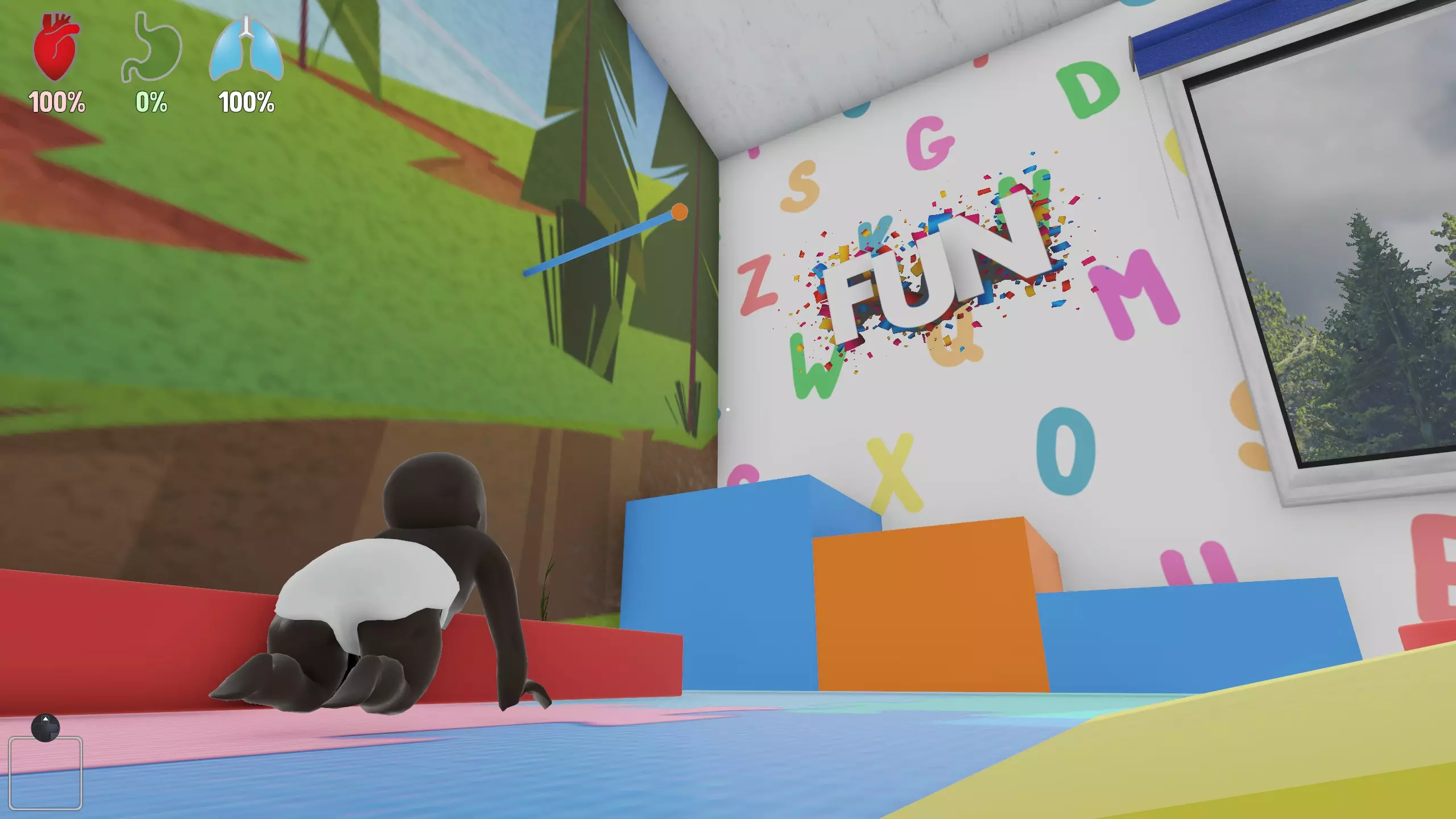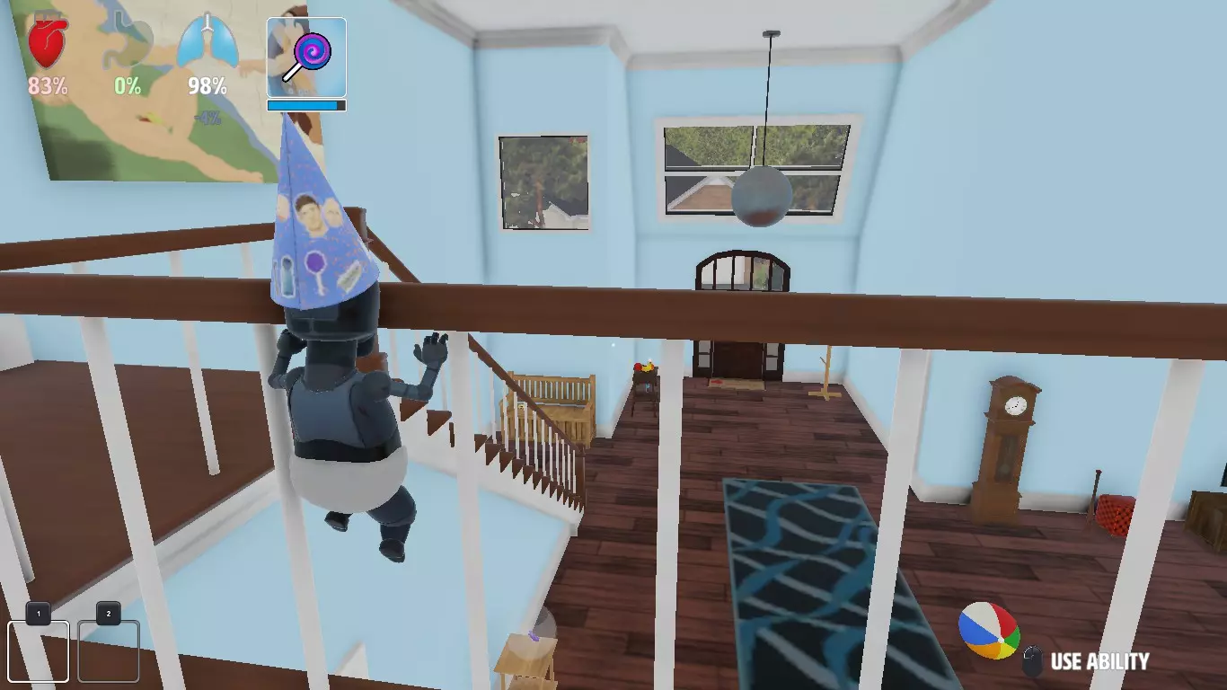 好的 任务:撞倒屋子里所有的画 说明:撞击画作即可将其撞倒。图片位置: 客厅:一幅沙漠画,五幅香蕉画(全部5幅位于通往二楼的楼梯处) 二楼走廊:两幅香蕉画 儿童房:两幅香蕉画 办公室:一幅沙漠画,两幅香蕉画 父母房:两幅沙漠画,一幅香蕉画 二楼浴室:一幅香蕉画(如果无法拿起画,尝试爬上架子并跳向)房间内的画) 厨房:一幅香蕉画,一幅沙漠画,一幅盐画 一楼浴室:一幅盐画 Get The Babies Out Of The Pool 任务:把孩子们从水里救出来 说明:从房子侧面拿泳池抄网把孩子们捞出来,他们会抓住网,一次性把所有孩子从泳池里捞出来即可完成挑战