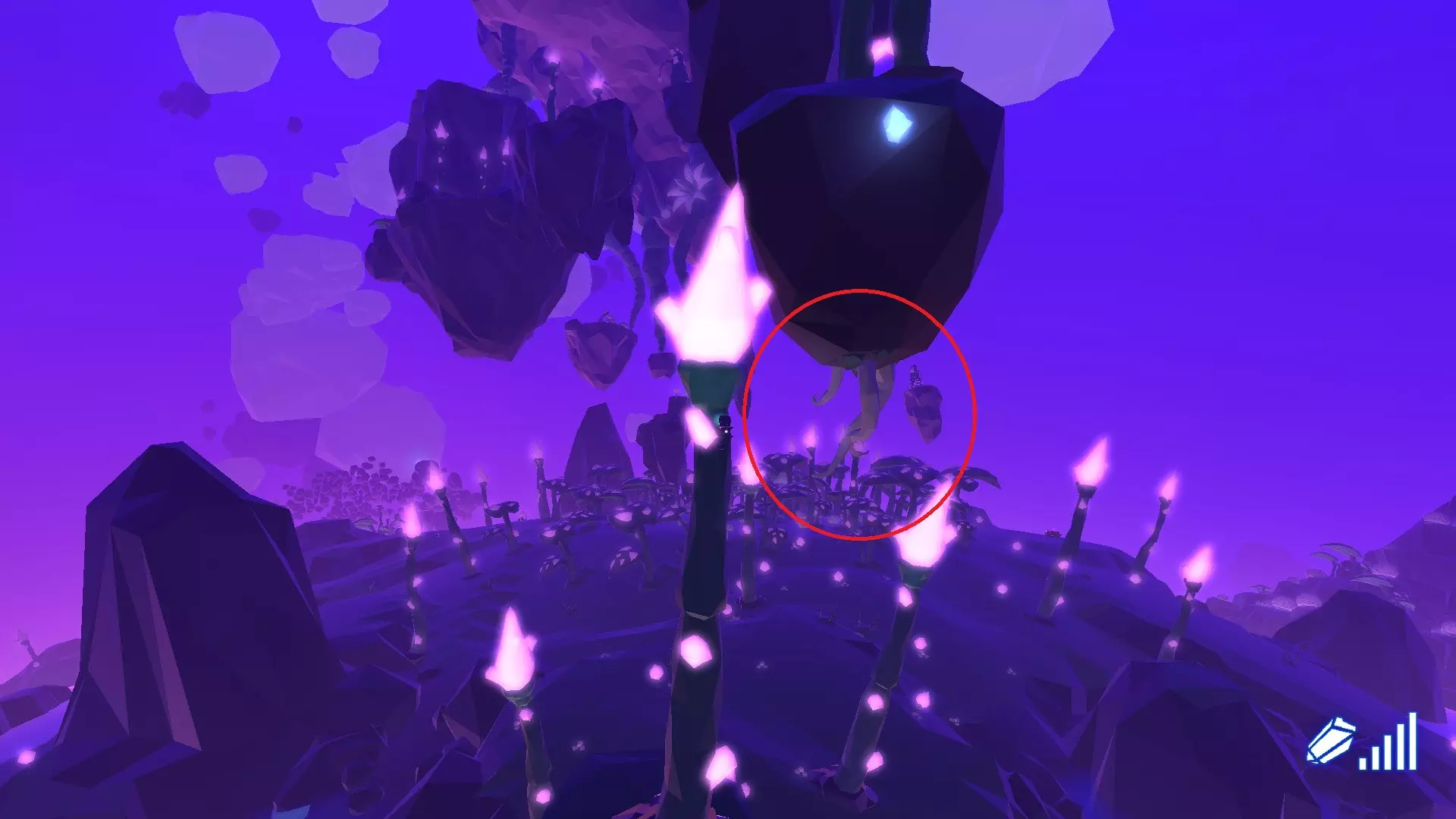 紫色发光岛屿。 最近的传送路由器:含羞草沼泽
