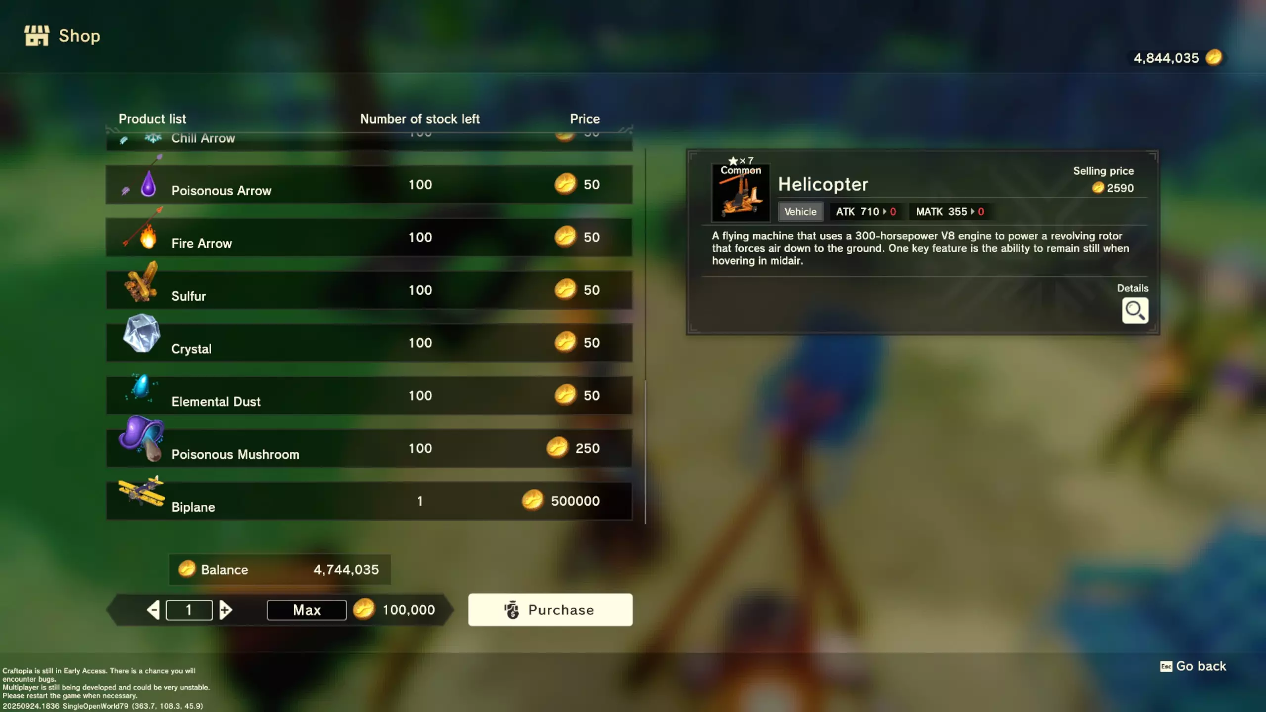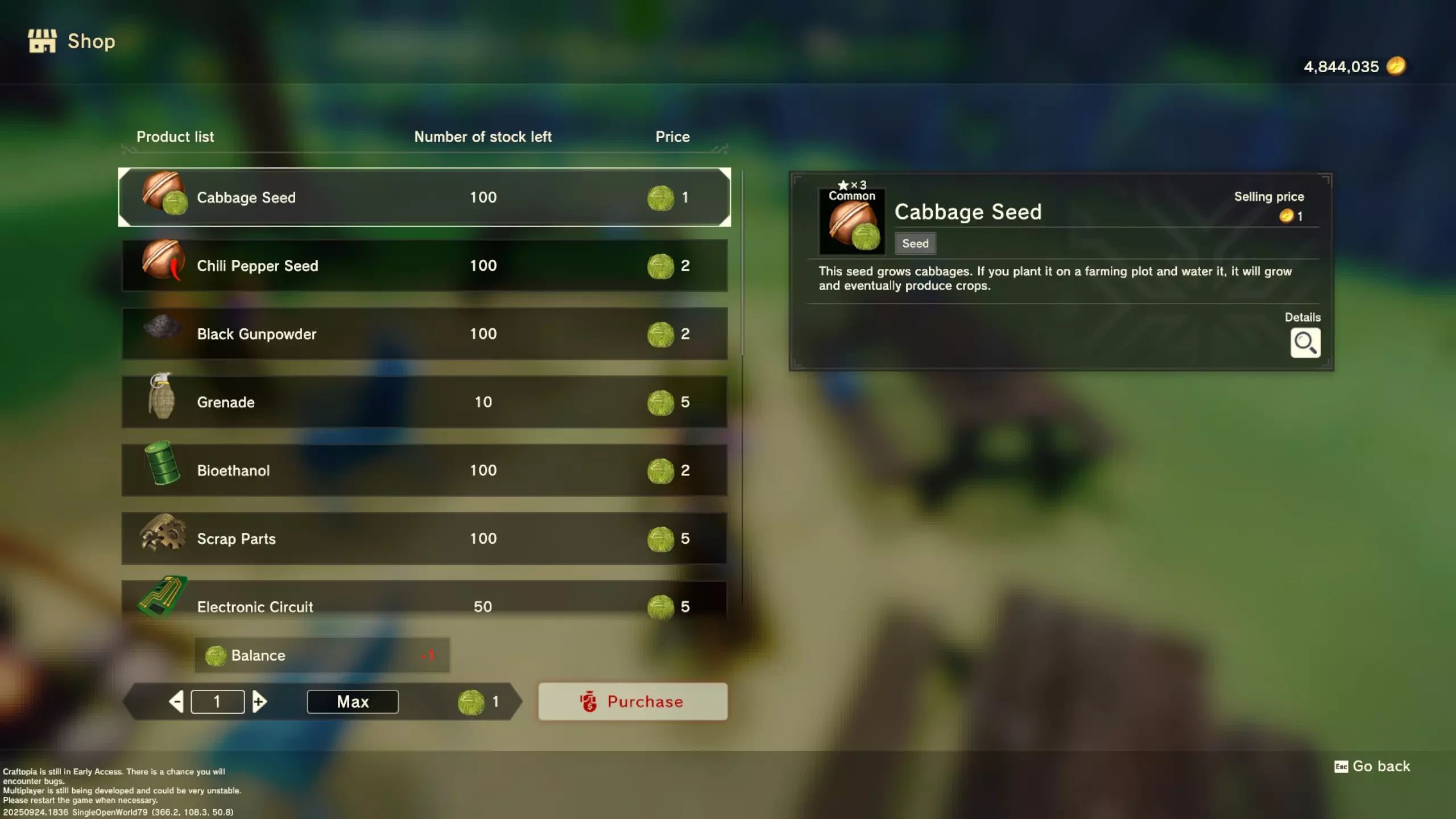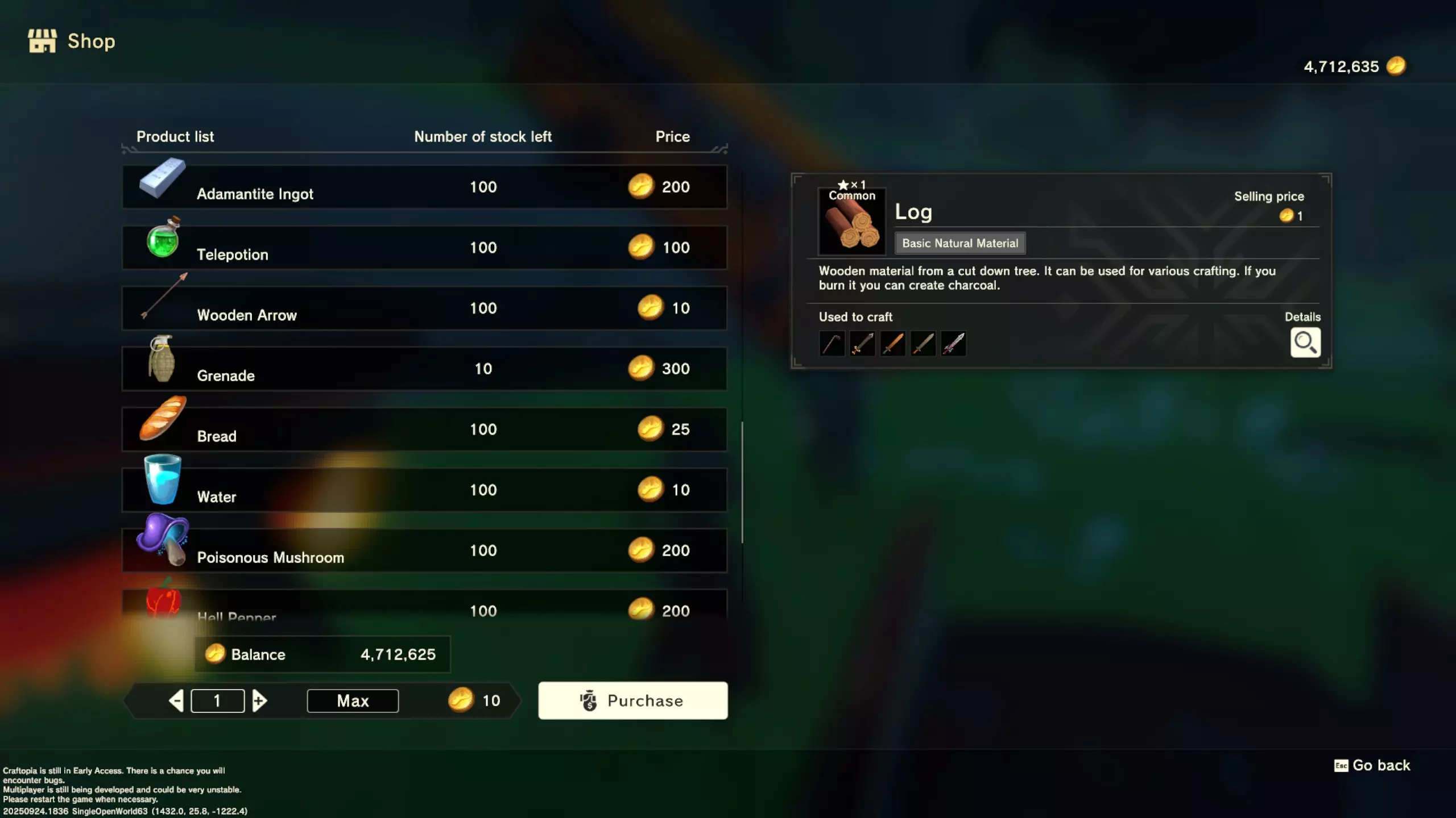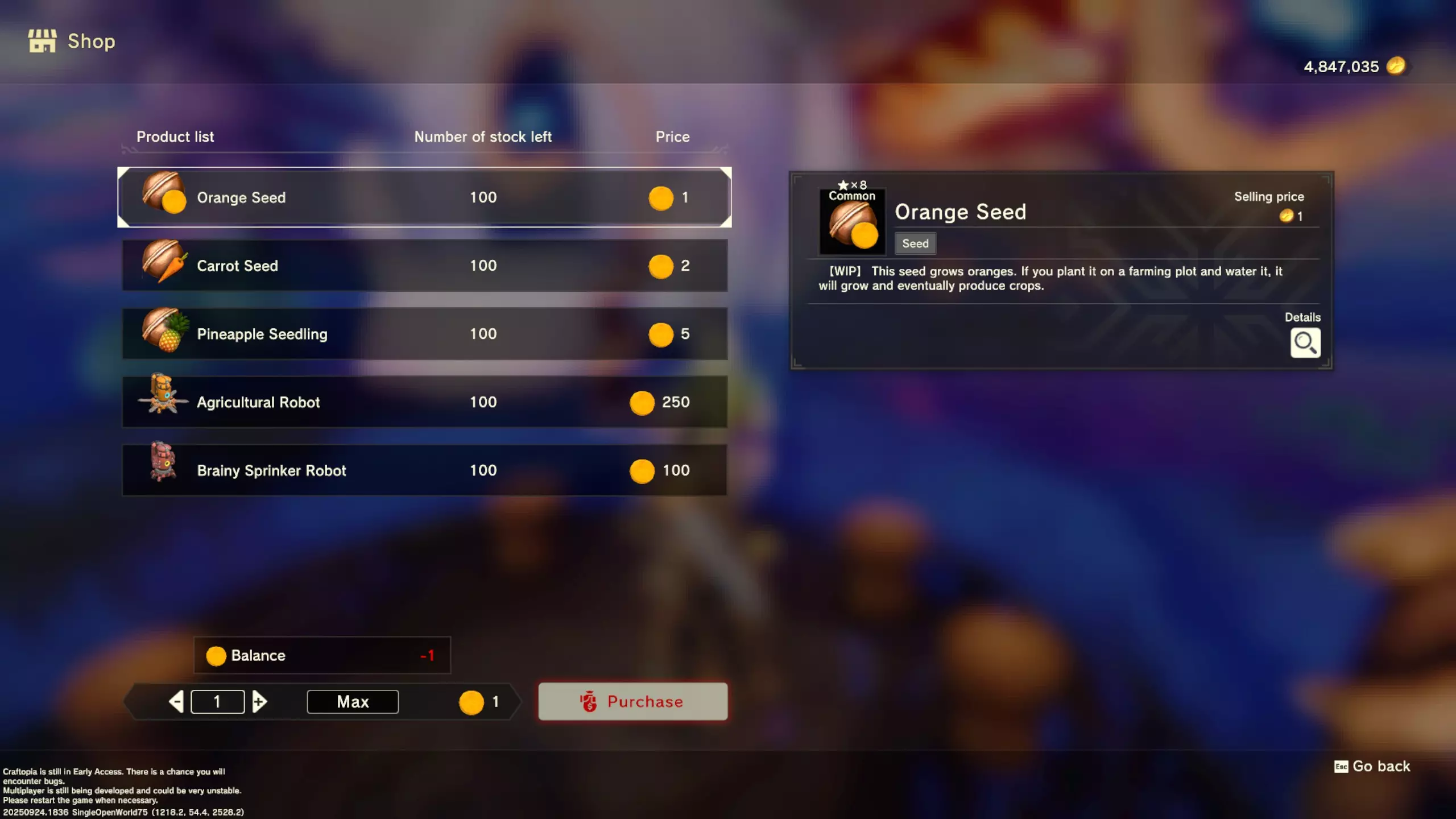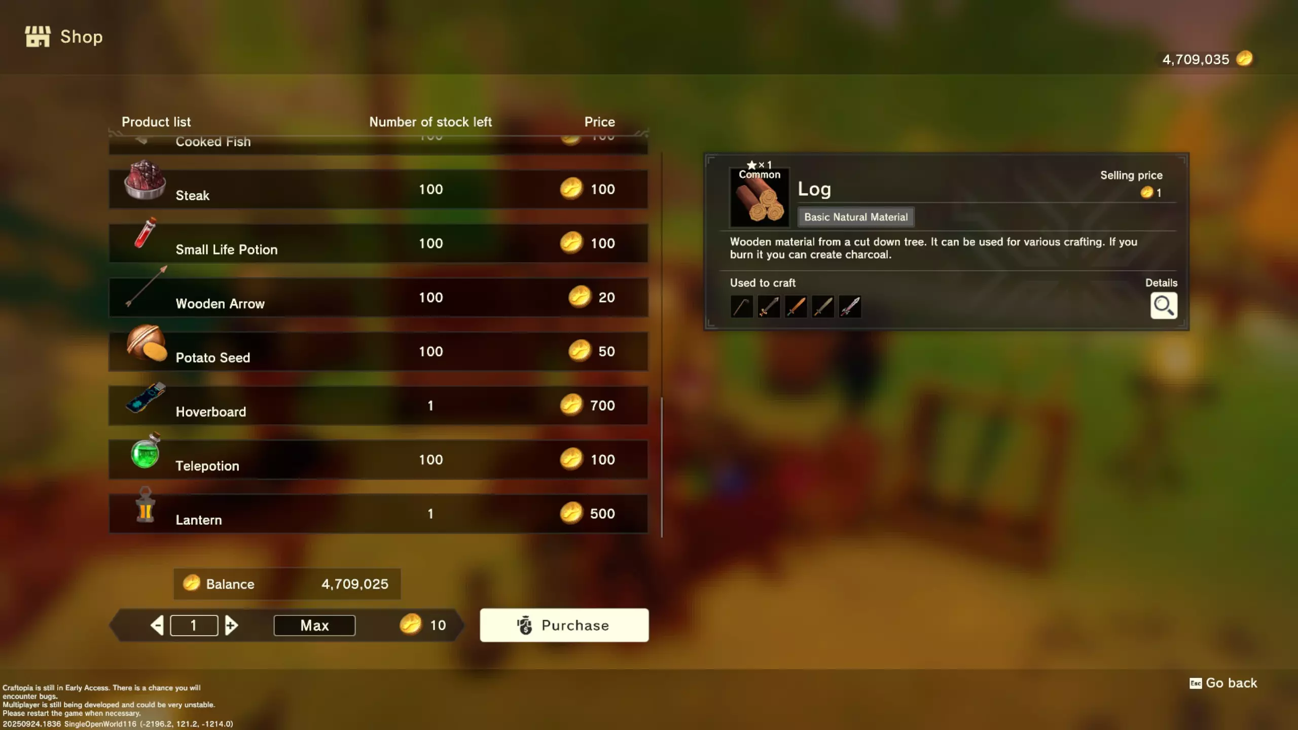 更大版本在此 物品名称# 库存 作物成本 土豆种子 100 15 豆类种子 100 15 苹果种子 100 15 南瓜种子 100 15 葡萄种子 100 15 辣椒种子 100 15 桃子种子 100 15 橙子种子 100 15 西葫芦种子 100 15 茄子种子 100 15 洋葱种子 100 15 菠萝种子 100 15 湍流之水画作 1 8000 美丽女士肖像 1 8000 倒牛奶女士肖像 1 8000 向日葵画作 1 8000 侧面女士肖像 1 8000 魔法羽毛 5 1000 战争坦克 1 5000 骑乘式耕耘机 1 2000 堆肥箱 20 300 硬木原木 100 3 硬石 100 3 目前我从未见过有卷心菜种子、番茄种子和水稻种子出售。 全部文字说明 如果出于某种原因你希望查看所有文字说明,那么下面这部分就是为你准备的。但我只想说,图片能让这一切变得简单得多。你真的要试图让我相信你知道什么是刺剑吗?但当我给你看这把剑的图片时,它就在那里。知识储备完成!不管怎样……我还在研究这个。这需要大量的写作和格式调整……我可能会完成这部分,也可能不会。 吉扎高原村 土豆商人 物品名称 库存数量 土豆价格 土豆种子 100 1 水稻种子 100 5 耕地 20 50 播种机蓝图 1 25 水井蓝图 1 50 100级经验药水 1 50 黄金商人 物品名称 库存数量 黄金价格 原木 100 10 石头 100 10 旧抹布 100 50 树枝箭 100 10 宽剑 1 100 细剑 1 500 拐杖 1 500 木刀 1 500 双手剑 1 500 干草叉 1 500 面包 100 25 烤鱼 100 100 牛排 100 100 小型生命药水 100 100 木箭 100 20 土豆种子 100 50 悬浮滑板 1 700 传送药水 100 100 灯笼 1 500