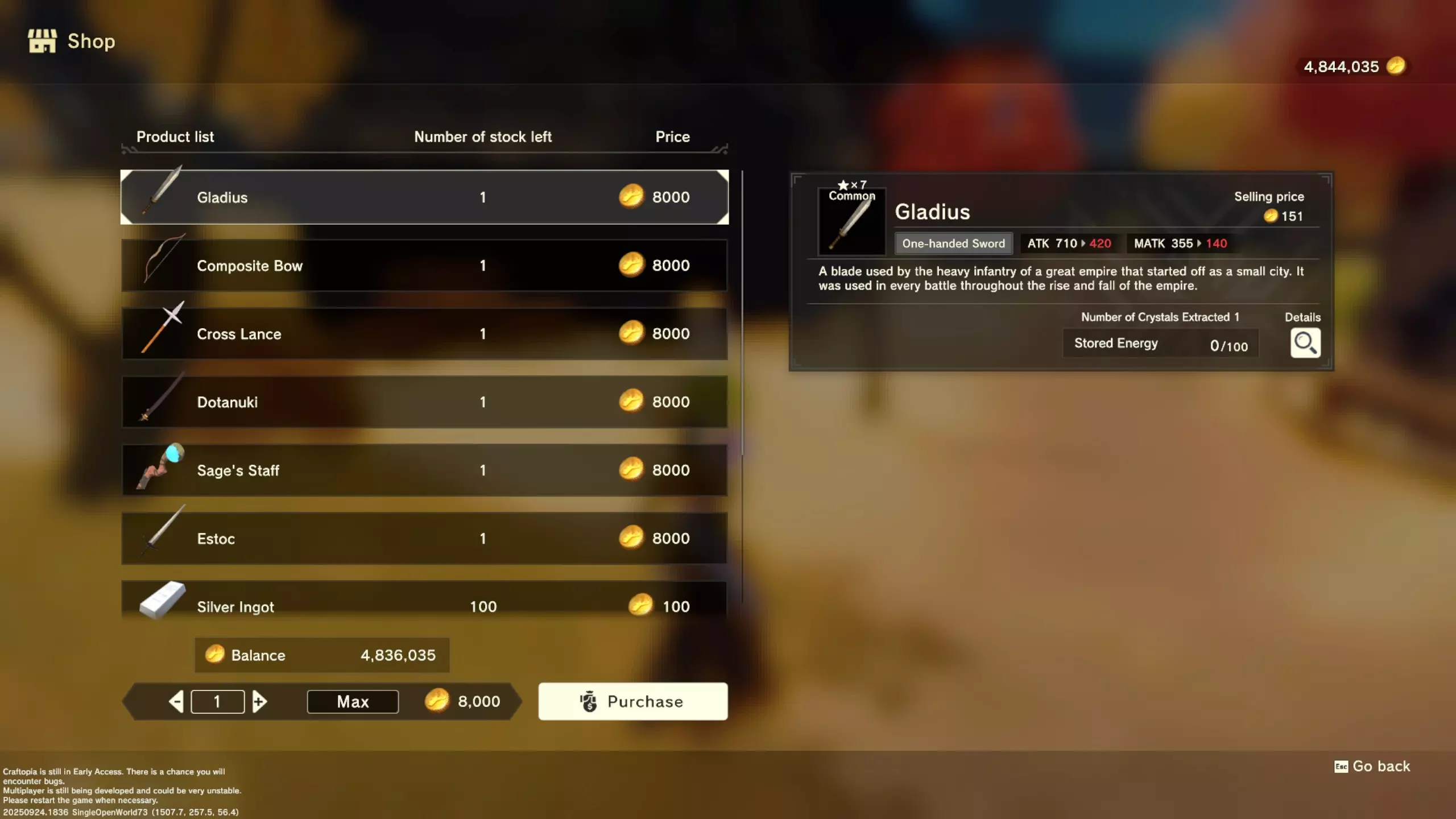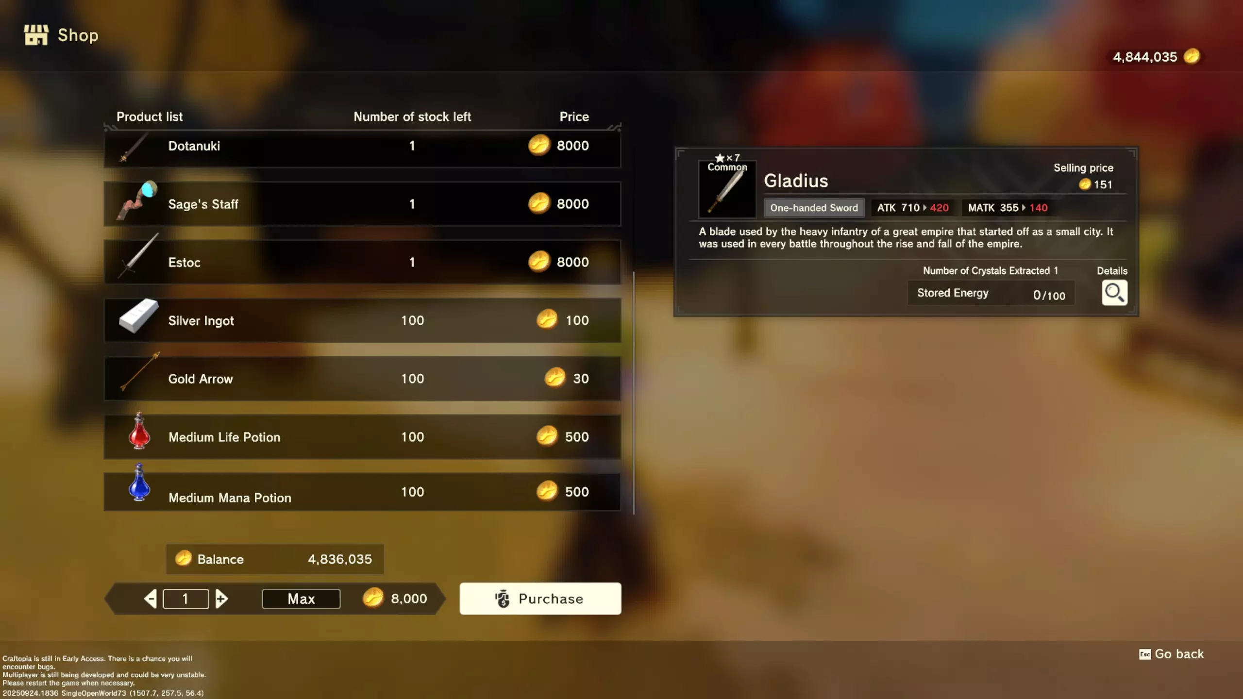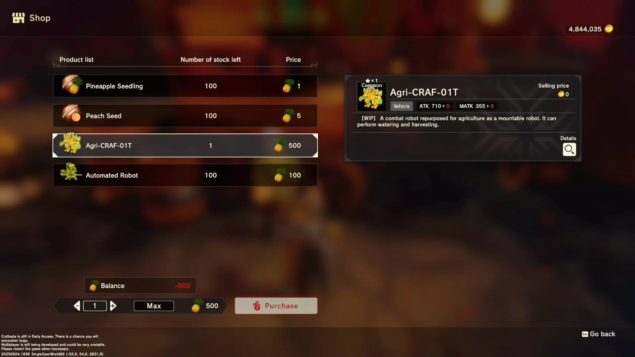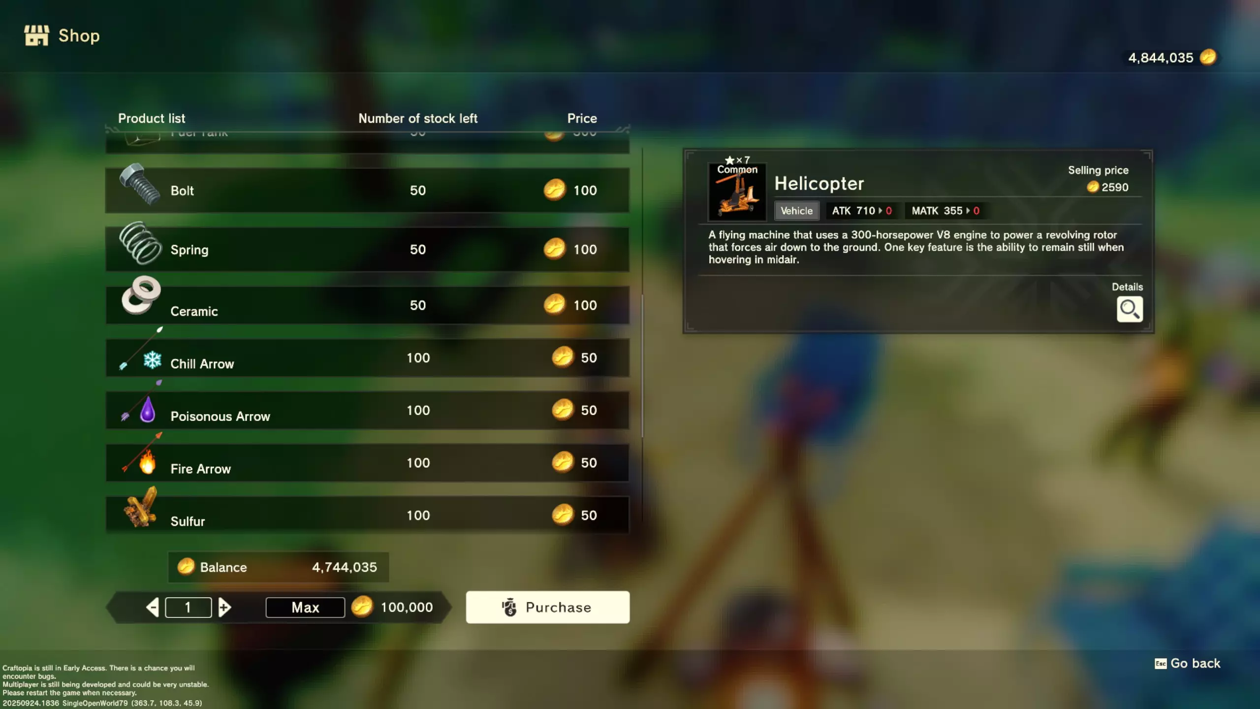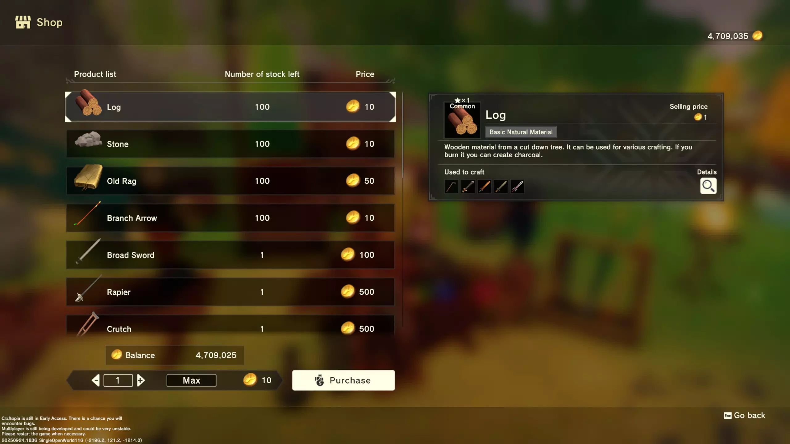 更大版本在此 物品名称# 库存 作物成本 土豆种子 100 15 豆类种子 100 15 苹果种子 100 15 南瓜种子 100 15 葡萄种子 100 15 辣椒种子 100 15 桃子种子 100 15 橙子种子 100 15 西葫芦种子 100 15 茄子种子 100 15 洋葱种子 100 15 菠萝种子 100 15 湍流之水画作 1 8000 美丽女士肖像 1 8000 倒牛奶女士肖像 1 8000 向日葵画作 1 8000 侧面女士肖像 1 8000 魔法羽毛 5 1000 战争坦克 1 5000 骑乘式耕耘机 1 2000 堆肥箱 20 300 硬木原木 100 3 硬石 100 3 目前我从未见过有卷心菜种子、番茄种子和水稻种子出售。 全部文字说明 如果出于某种原因你希望查看所有文字说明,那么下面这部分就是为你准备的。但我只想说,图片能让这一切变得简单得多。你真的要试图让我相信你知道什么是刺剑吗?但当我给你看这把剑的图片时,它就在那里。知识储备完成!不管怎样……我还在研究这个。这需要大量的写作和格式调整……我可能会完成这部分,也可能不会。 吉扎高原村 土豆商人 物品名称 库存数量 土豆价格 土豆种子 100 1 水稻种子 100 5 耕地 20 50 播种机蓝图 1 25 水井蓝图 1 50 100级经验药水 1 50 黄金商人 物品名称 库存数量 黄金价格 原木 100 10 石头 100 10 旧抹布 100 50 树枝箭 100 10 宽剑 1 100 细剑 1 500 拐杖 1 500 木刀 1 500 双手剑 1 500 干草叉 1 500 面包 100 25 烤鱼 100 100 牛排 100 100 小型生命药水 100 100 木箭 100 20 土豆种子 100 50 悬浮滑板 1 700 传送药水 100 100 灯笼 1 500