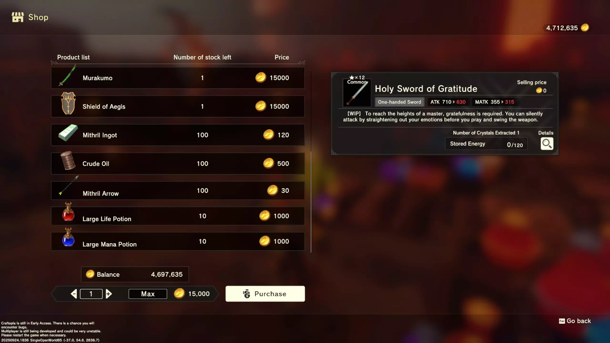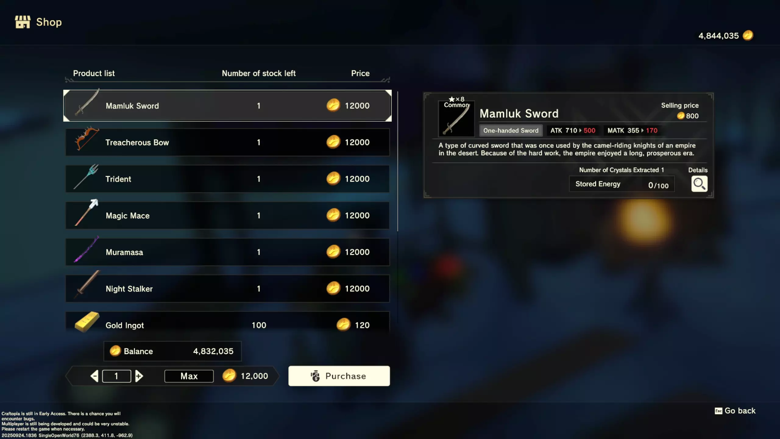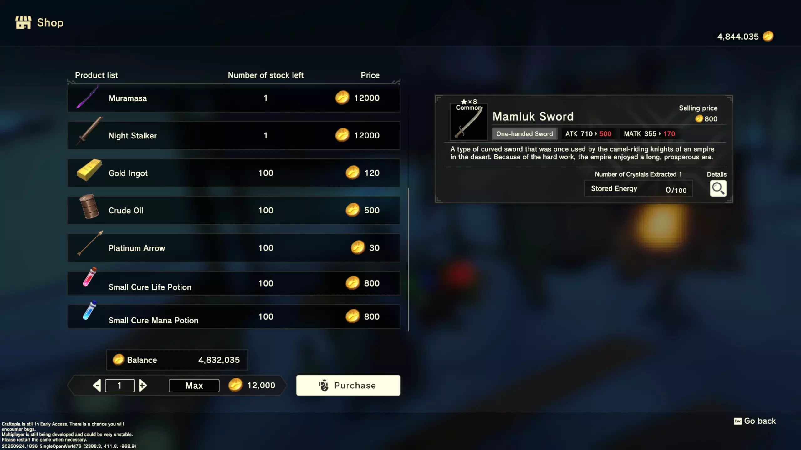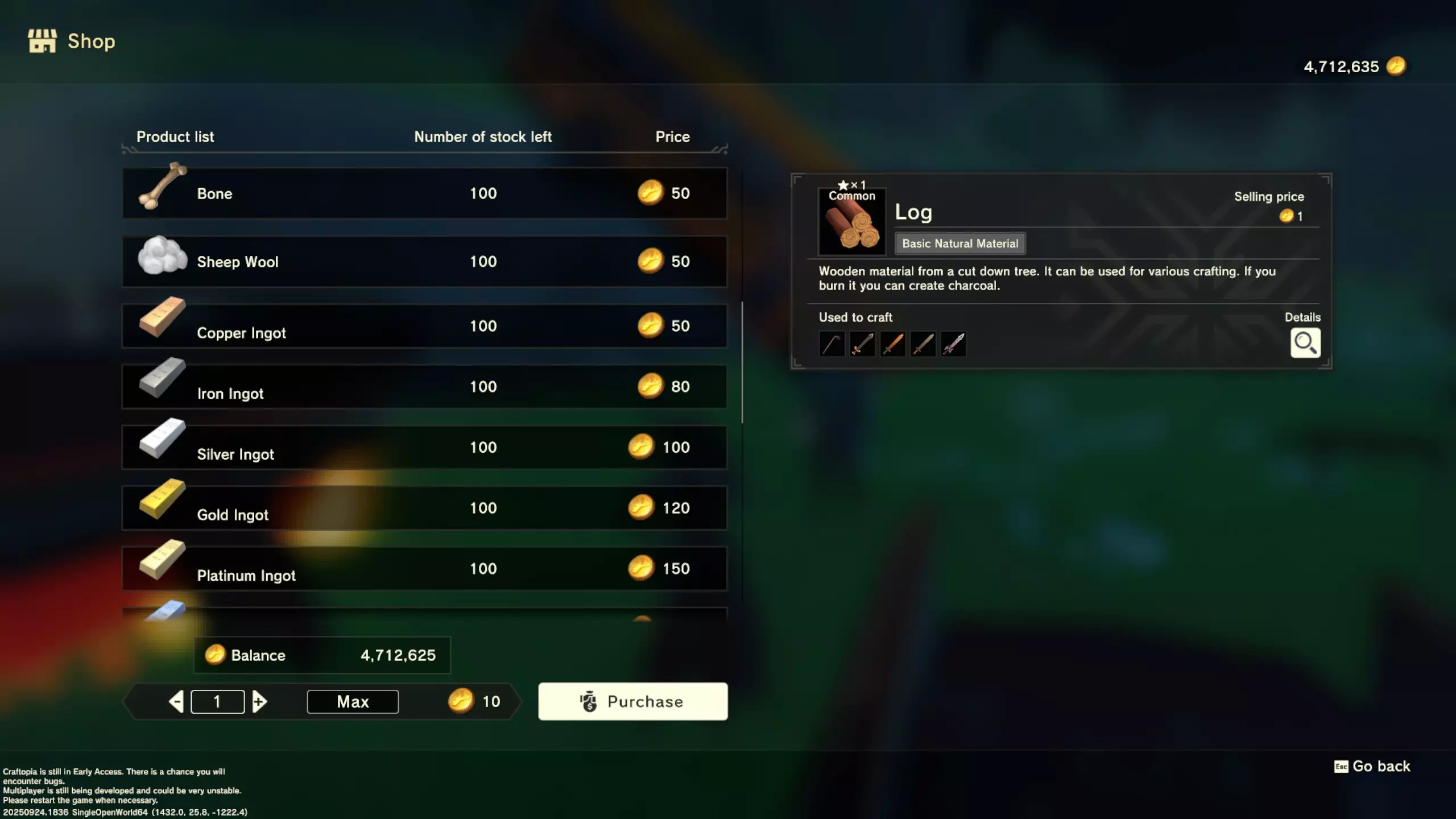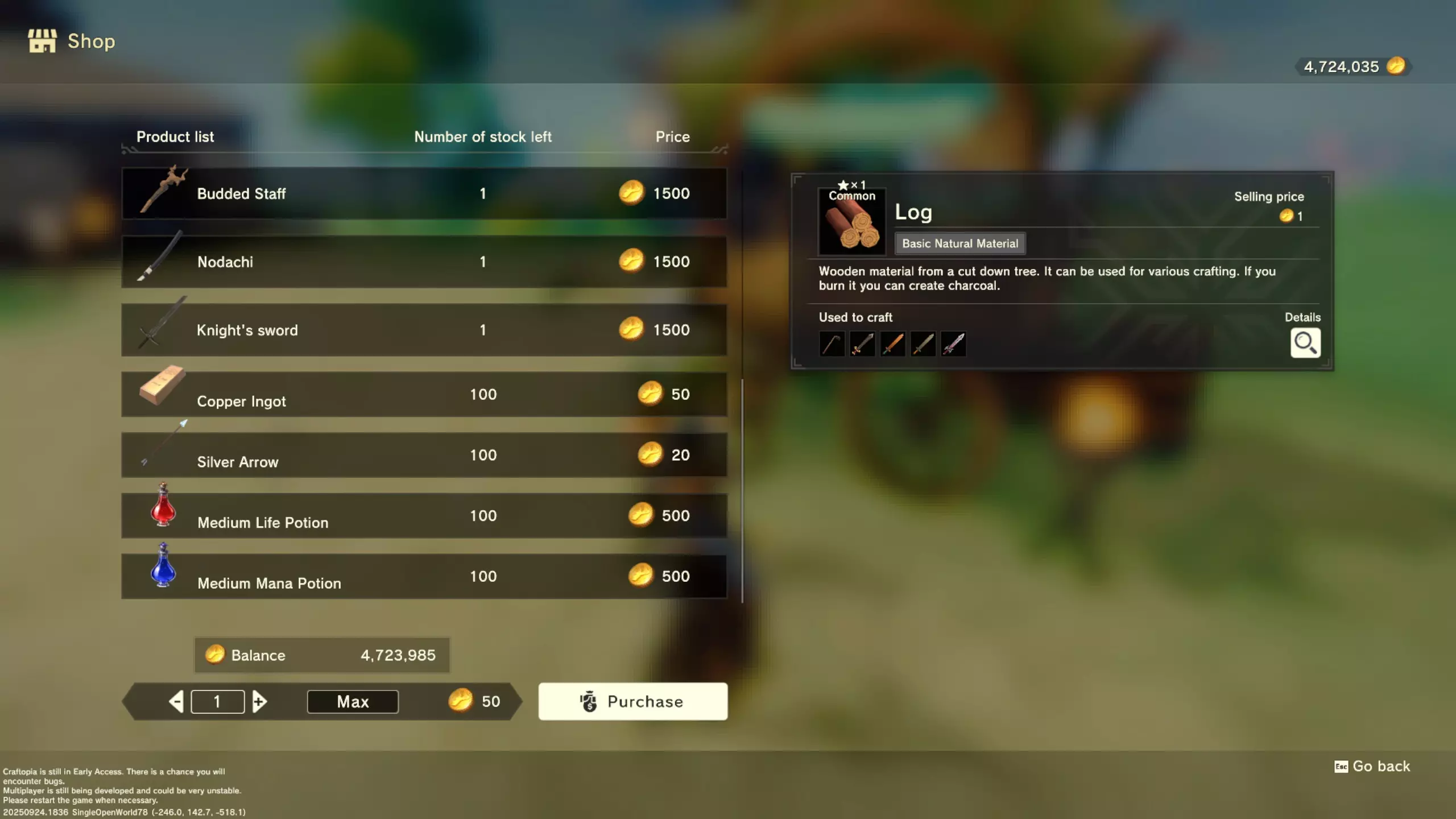 更大版本在此 物品名称# 库存 作物成本 土豆种子 100 15 豆类种子 100 15 苹果种子 100 15 南瓜种子 100 15 葡萄种子 100 15 辣椒种子 100 15 桃子种子 100 15 橙子种子 100 15 西葫芦种子 100 15 茄子种子 100 15 洋葱种子 100 15 菠萝种子 100 15 湍流之水画作 1 8000 美丽女士肖像 1 8000 倒牛奶女士肖像 1 8000 向日葵画作 1 8000 侧面女士肖像 1 8000 魔法羽毛 5 1000 战争坦克 1 5000 骑乘式耕耘机 1 2000 堆肥箱 20 300 硬木原木 100 3 硬石 100 3 目前我从未见过有卷心菜种子、番茄种子和水稻种子出售。 全部文字说明 如果出于某种原因你希望查看所有文字说明,那么下面这部分就是为你准备的。但我只想说,图片能让这一切变得简单得多。你真的要试图让我相信你知道什么是刺剑吗?但当我给你看这把剑的图片时,它就在那里。知识储备完成!不管怎样……我还在研究这个。这需要大量的写作和格式调整……我可能会完成这部分,也可能不会。 吉扎高原村 土豆商人 物品名称 库存数量 土豆价格 土豆种子 100 1 水稻种子 100 5 耕地 20 50 播种机蓝图 1 25 水井蓝图 1 50 100级经验药水 1 50 黄金商人 物品名称 库存数量 黄金价格 原木 100 10 石头 100 10 旧抹布 100 50 树枝箭 100 10 宽剑 1 100 细剑 1 500 拐杖 1 500 木刀 1 500 双手剑 1 500 干草叉 1 500 面包 100 25 烤鱼 100 100 牛排 100 100 小型生命药水 100 100 木箭 100 20 土豆种子 100 50 悬浮滑板 1 700 传送药水 100 100 灯笼 1 500