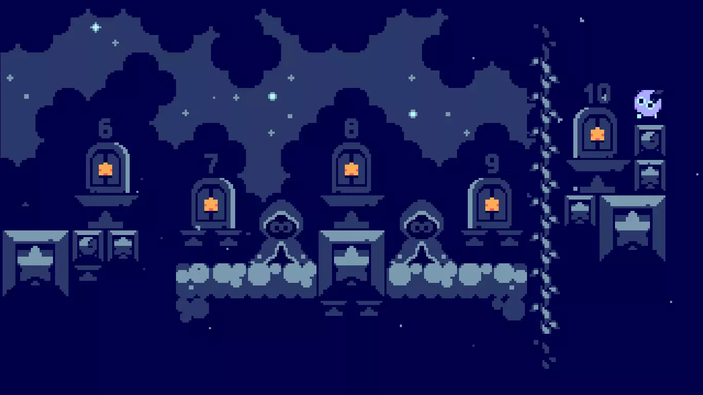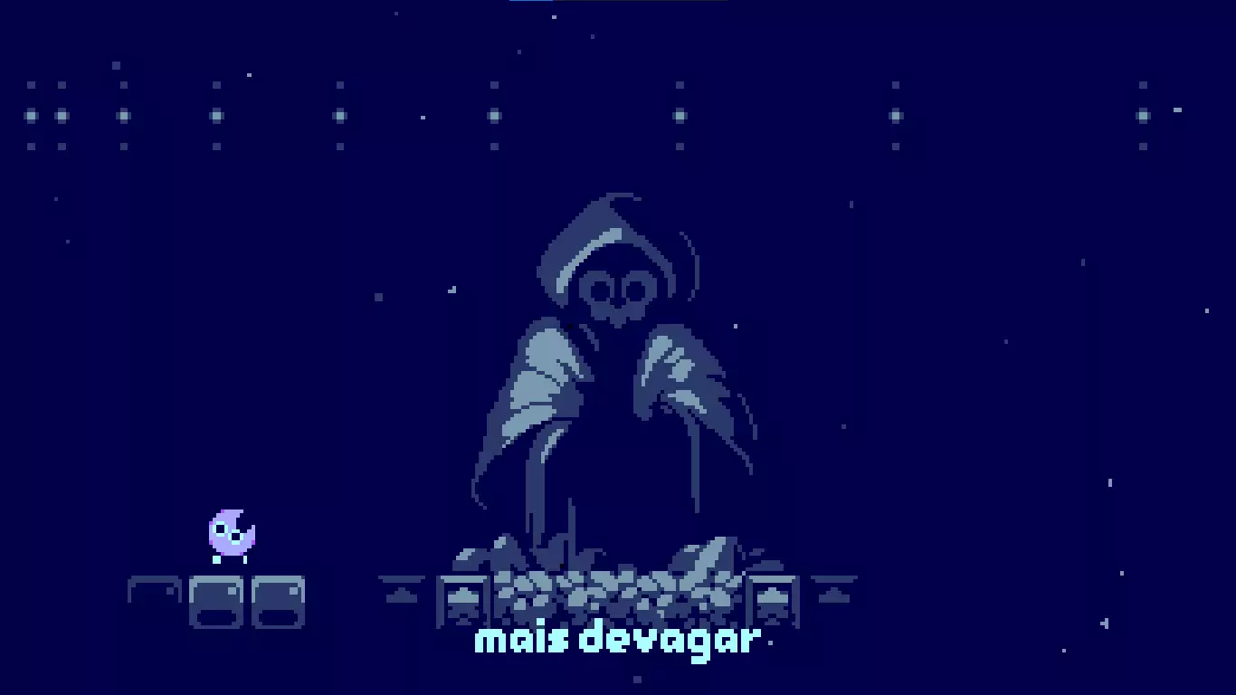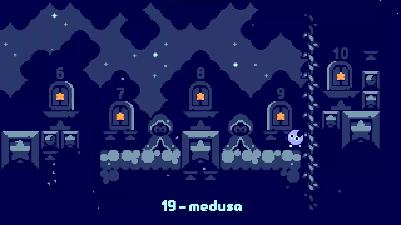 月神! 你需要获得所有关卡的S级评价。 要获得S级评价,你需要以最少的跳跃次数完成关卡。 评价等级会显示在关卡正上方,如下图所示。 注意:如果关卡中有乌鸦,而你没有收集它,即使你使用了最少的跳跃次数,也不会显示评价等级。 成就: Mortes Iniciante 死亡10次 Veterano 死亡100次