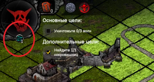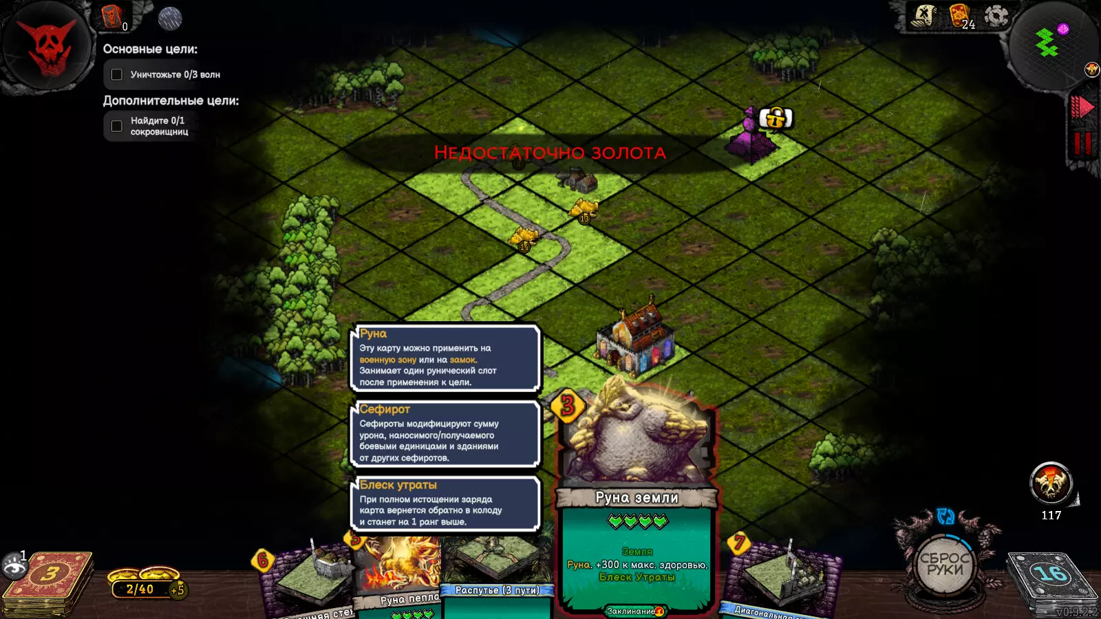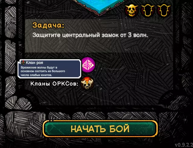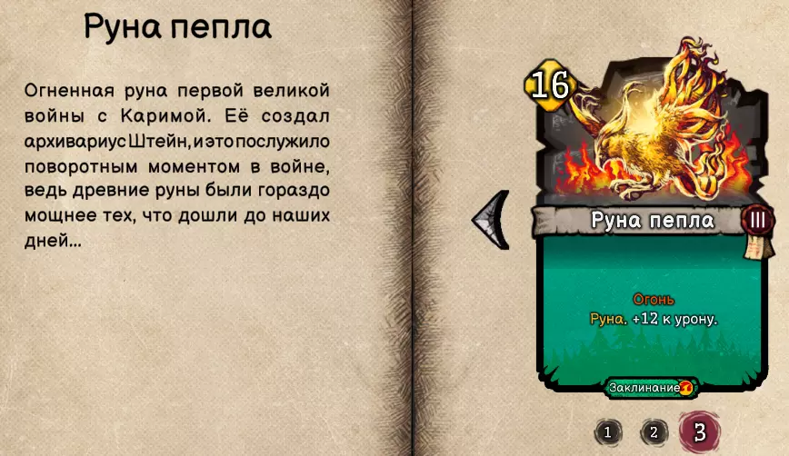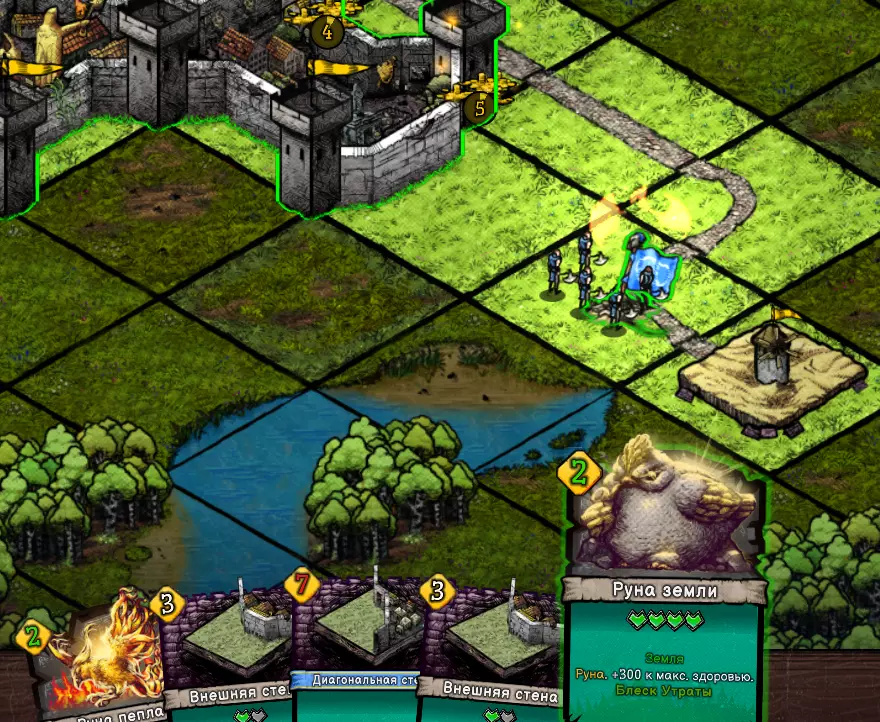 这类兽人没有元素生物的庇护,这意味着它很可能代表着【平衡】,对付这类敌人,除了以太外,其他攻击方式都可以使用。我将开始战斗并建造第一座城堡。 我们从宝箱中获得了大地符文(大地元素生物或硒铁矿),这种卡牌在耗尽所有充能后会立即消失,不会升级为更强的版本。