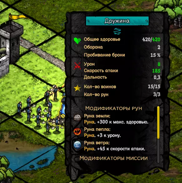 我打算给步兵施加大地符文,让他们变得更坚固。你也可以给步兵施加各种不同的符文,还能将对应步兵的卡牌应用到步兵身上,以此将他们的数量从5增加到10,再到15。最多只能到15。