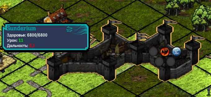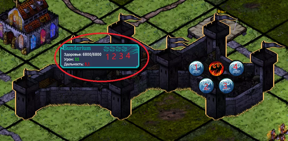 我使用了带有火焰赛洛芬的卡片,城堡的伤害提升了。并且城堡的元素属性也变为了火焰。