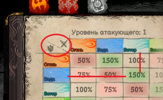 每个元素会对其他元素造成一定百分比的伤害,同时也会受到其他元素一定百分比的伤害。例如,如果风元素对水元素造成150%的伤害,那么风元素对风元素自身只会造成一半的伤害。