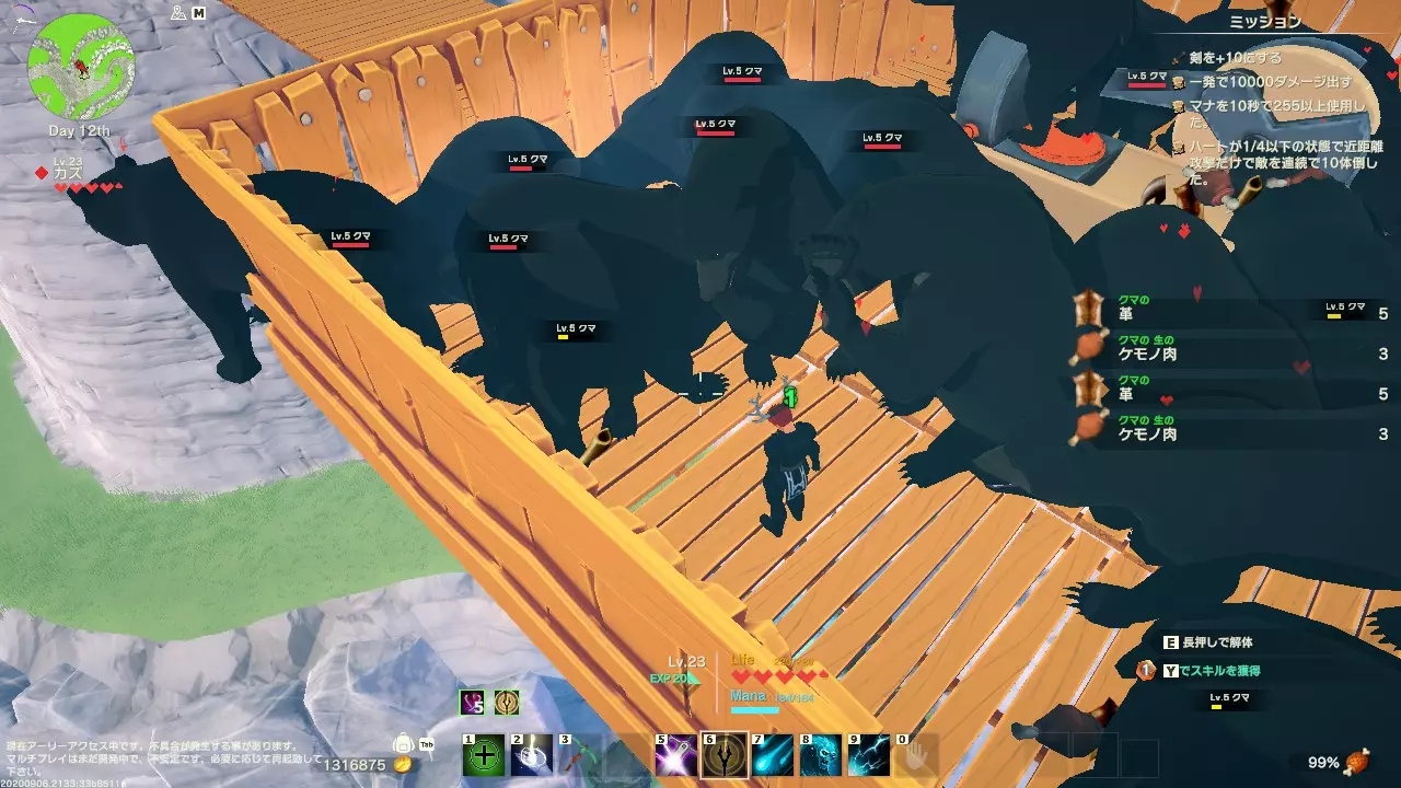 升级 在《创世理想乡》中,升级对于获取技能至关重要,但只有攻击并击败敌人才能获得经验值。 【版本更新后,通过采矿、采集等活动也能增加经验值,等级提升变得更加容易了。】 那么应该击败哪些敌人来升级呢? 1-10级:羊、牛、教程中的NPC 11级及以上:通过自动交配所升级或参加蹴球的试炼(踢足球的那个) 10级之前,只需击败那些不怎么主动攻击的敌人,就能轻松升级,这是不言而喻的。虽然听起来很厉害,但即使是在教程栈桥的人也能轻松提升等级。 11级之后的等级提升,就算正常游玩也很难提高,所以可以通过建造自动交配所,利用闪电等方式一次性击败大量生物来提升等级。 具体方法是在无法破坏的地形上让大象、鳄鱼等大型生物无限繁殖,等聚集到一定数量后一次性击败它们来升级。 用这种方法应该能轻松升到30级左右。通过在交配所繁殖阿努比斯来改变岛屿,可根据岛屿等级繁殖出5到40级的阿努比斯,同时能获得200到2000的大量经验值,能在较短时间内将等级提升至50级。 此外,还有一种通过踢球(攻击)将球踢入洞内来完成的试炼,破坏该球可获得数百到数千的经验值(分为初级和中级)。不过破坏球需要一定的攻击力,建议通过技能重置来特化攻击后再尝试挑战。 由于更新后球变得非常坚硬,难以破坏,因此该方法已无法用于升级。在熊的自动交配所进行等级提升(交配熊不会主动攻击,并且不会破坏建筑)