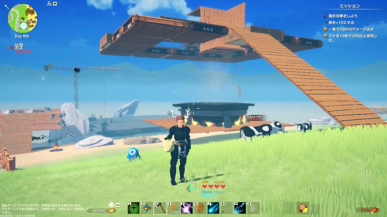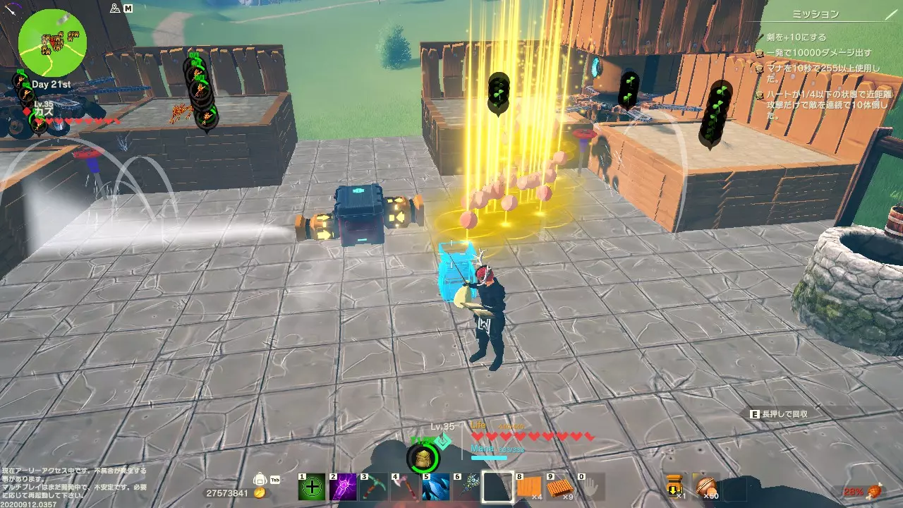 最后 这款游戏确实融入了各种各样的游戏和动漫作品元素。 光是找出这些元素就非常有趣, 虽然现阶段游戏尚未完成,但有很多可以让人享受的部分。 今后还会追加龙珠的元素以及枪支的实装等内容, 多人游戏目前虽然可以进行, 但根据个人的网络环境,可能需要进行防火墙设置, 或者使用hamchi等其他应用程序,操作起来可能会有些复杂。 不过今后似乎会尽快改善这方面的问题, 让我们一起期待吧!!目前游戏还没有主线剧情,但开发团队希望大家能享受当下的游戏内容,所以以抢先体验的形式开放游玩,不用过于纠结细节!大家可以试着找到自己独特的玩法。此外,社区里大家也会一起讨论bug及解决方法,加入相关社区可能是个不错的选择。《创世理想乡》更新内容 1. 调整了耐力的UI显示。 2. 平衡调整 - 敌人更容易被捕捉了。 - 调整了部分附魔的效果。 - 修正了部分动物发电机的持续时间。 - 将载具的耐久度减少量降低了一半。 (这是临时措施。计划在今后实装可修理建筑和载具的装备。对于载具容易损坏我们深表歉意……我们会继续调整以让大家能愉快地乘坐!) 3. 新要素 - 作为初期的远程武器,实装了新物品【树枝弓】和【树枝箭】。 - 新增了为创世理想乡增添色彩的新建筑物品【石墙】。《创世理想乡》更新内容及修复公告 1. 未来计划积极追加建造家园所需的物品! 2. 已确认存在以下问题,计划于明日起进行修复: ① 石墙与部分建筑物相邻时会出现穿墙的bug。 ② 石墙放置时特效难以看清的问题。 3. v20200910.0147版本更新信息:这是官方发布的9月10日修正内容。 4. 地图bug的修复令人感激,毕竟之前开放的地图全都一个样子,实在是很麻烦。 5. 由于除盾牌外其他装备提升的防御力不多,狩猎可能会变得有些困难。《创世理想乡》修复公告 1. 重要bug修复 - 修复了从某岛屿移动到同形状岛屿,以及从该岛屿返回时,矿石种类发生变化等多种bug。 2. bug修复 - 使建设时的音效音量能正确反映音效音量设置。 3. 功能改善 - 缓解了采掘机难以放置的问题。 - 改良了坠落恢复处理。通过此项改进,当角色坠入地面下方时,会传送至最后站立的地面附近。 - 延长了聊天气泡的显示时间。 - 修正了在 dungeon 内倒下时,复活地点为最后传送坐标的问题。《创世理想乡》更新内容 1. 更容易从地牢复活! 2. 夜间NPC的尸体会消失。不过,似乎也有少数对现世执念很深的NPC…… 3. 平衡调整 - 调整了高等级敌人的攻击力,使其随着等级提升而变得更高。我们计划继续进行调整,欢迎大家提供反馈。 - 将装备修理成功率从每点80%提升至90%。最大耐久度恢复及增加系统预计在近期实装。对于受耐久度问题困扰的玩家,还请再稍作等待。 - 强化了弗兰贝尔茹。 4. 附魔 - 实装了历战附魔。《创世理想乡》更新内容 - 【古老魔像】会掉落相关物品。 - 新增【真红】附魔,由强大的真红敌人掉落。 - 新增【炎之恶魔】附魔。 - 新增龙类的掉落物品。 - 【古老魔像】不再掉落【危险】附魔。 - 【危险】附魔调整为从看起来危险的敌人身上掉落。 - 调整【炎之精灵】附魔。 - 强化【危险】附魔,使其防御力更难下降。《创世理想乡》技能调整内容 1. 武器研磨:攻击力倍率略微上调 2. 空中连击:减少饱食度消耗 3. 冰霜地雷:引入等级机制。等级提升后威力和冰块数量增加 4. 召唤陨石:引入等级机制。等级提升后威力增加(目前较难命中敌人,计划日后修复) 5. 时间锁定:引入等级机制。等级提升后减少MP消耗和冷却时间 6. 居合斩:引入等级机制 7. 百花缭乱:最高等级从1级调整为6级 8. 背水之阵:防御力进一步下调 9. 反击:攻击力倍率大幅上调 ☆本次技能调整后,将开放【仅一次免费技能重置】功能《创世理想乡》v20200911.0119更新内容 ◆新要素 - 新增物品【砖块墙壁】。 - 按下Esc键打开的菜单中,新增UI隐藏功能,方便玩家进行截图。 注意:隐藏UI期间,各类UI显示可能出现异常,该功能仅用于截图。 ◆重要bug修复与改进 - 修复了生命值为1时,因饱食度0%而受到饥饿伤害的问题。 - 修复了旋转锯在放置时消失的问题。 - 增加了掉落物品上限。 此外,建筑要素得到充实,距离能够建造像样的房屋的日子越来越近了!《创世理想乡》更新内容 1. 修复了当敌人和NPC数量达到上限时,使用【旋转锯】【怪物棱镜】【爆破桶】不会消耗道具且会显示警告文本的问题。 - 但在多人游戏时,该警告文本仅会在主机端显示,此问题将在下次更新中修复。 - 本次修复可能解决【旋转锯】等道具使用后立即消失的问题(以便玩家察觉异常情况)。 2. 修复了持有道具类任务在从宝箱获取道具后无法完成的问题。《创世理想乡》更新内容 1. 修复了【激光剑】出现开发者非预期显示的问题。 2. 修复了因负面效果附魔组合,导致本应产生负面属性的状态变为正面属性的bug。 3. 修复了玩家攻击无限命中的bug。 4. 修复了玩家下落距离不足却触发【超级英雄落地】的问题。 ◆功能改善 1. 优化了部分UI显示(包括使技能界面的标签更易查看等)。 2. 商店的物品列表中现已显示附加的附魔效果。《创世理想乡》v20200912.0357更新内容 1. 重要的bug修正与改善 - 引入了根据岛屿等级对敌人的生命值和攻击力进行修正的机制。 2. 平衡调整 - 吸血的回复量进行了上调修正。同时,吸血效果从必定回复调整为概率回复。 3. 新要素 -