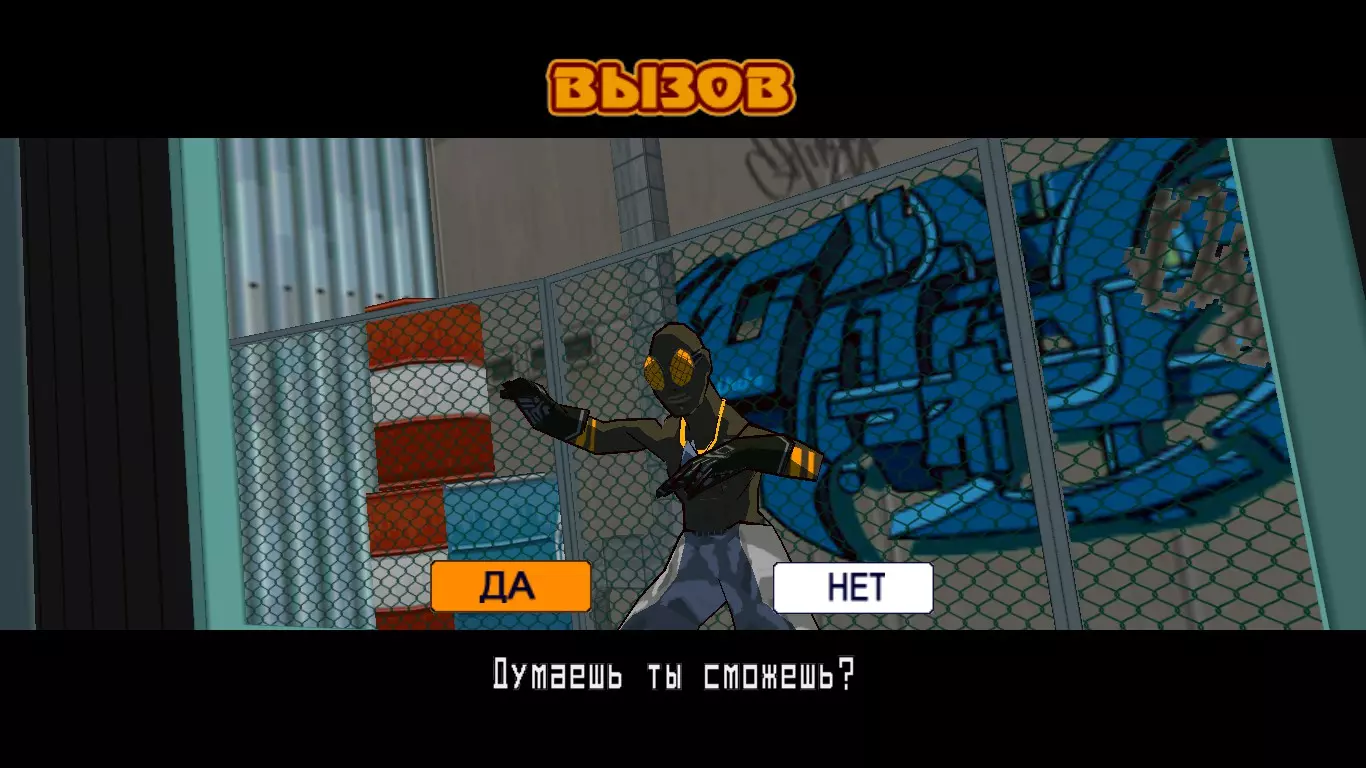 在降落伞兵到达前推开两名市民(no540)。不涂鸦,沿着斜坡向下跑,推开流浪汉和带狗的男人。这就是我们的技巧玩法。