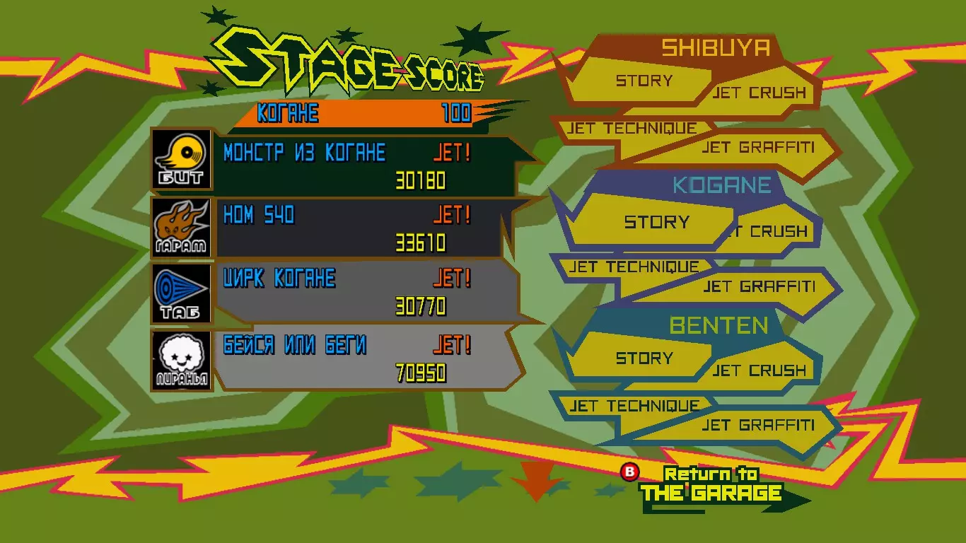 以“Jet”评价完成所有任务。 剧情 技巧 涂鸦 竞速 I got Soul