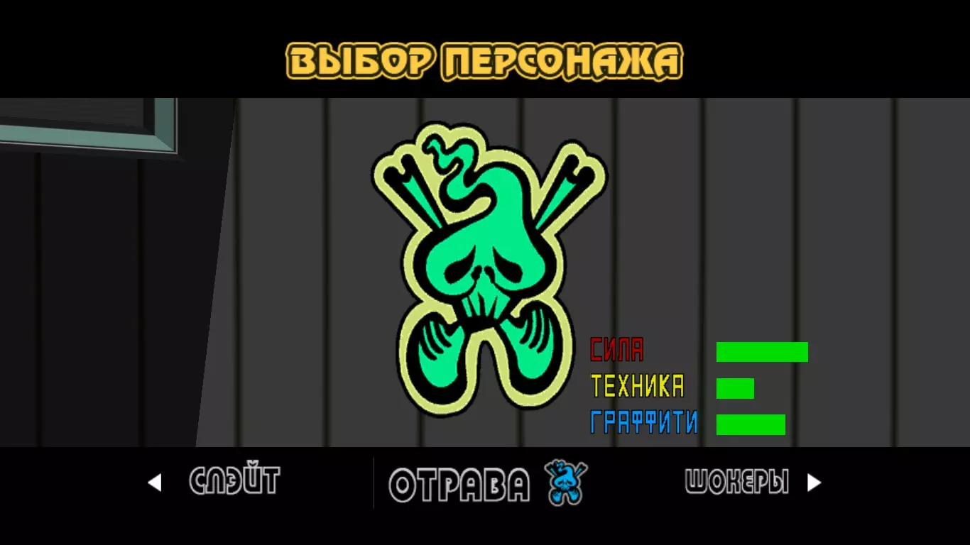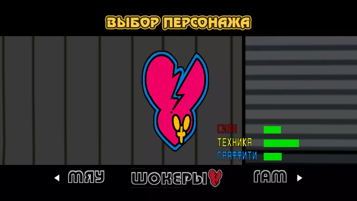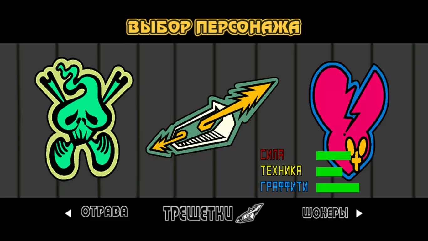 解锁所有角色。 游戏中共有15+1名角色。 比特、加姆和塔布从一开始就可使用。 加拉姆、喵和溜溜球在第一章发起挑战。 库博和康博在第二章出现。 皮兰尼亚和斯雷特在第三章发起挑战。 震击者、特雷谢特卡、毒药(+无面具)、豪治和波茨随着在“喷射”难度下通关游戏而解锁。详情如上所述。 King of the Street