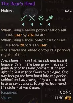 熊头是个相当不错的物品,能让你更好地利用药水,对所有人都有用,可惜你得在它和二次呼吸之间做选择。