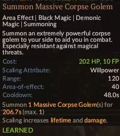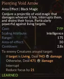 我会说这是一种混合法术。它的伤害不足以真正对单个强大目标造成有效伤害,范围也不够大到能一次性击中多个敌人,而且你的召唤物必须站在目标附近,所以你得等你的骷髅自爆小子足够靠近才行。说实话,它的专注值消耗和恢复时间不算高,这点还不错。值得注意的是,如果你队伍里有尸骸魔像或恶魔召唤物,它们对即死效果免疫,你可以随意施放这个法术,伤害效果会作用于敌人,但魔像/恶魔不会死亡。 8. 心灵虹吸