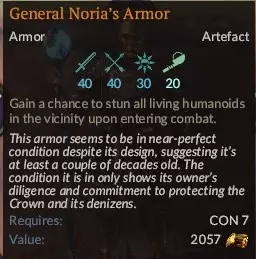 9. 诺里亚将军的护甲 这件护甲并非为你的死灵法师准备,而是给你的一名队友使用的,因为在战斗中击晕敌人的能力在战略任务中极为重要。