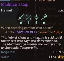 这是个不错的选择,因为你的护甲不会太高,而额外的复活选项非常有用。在【旧哈鲁】之后作为可选奖励获得。 6. 疯人帽,SR