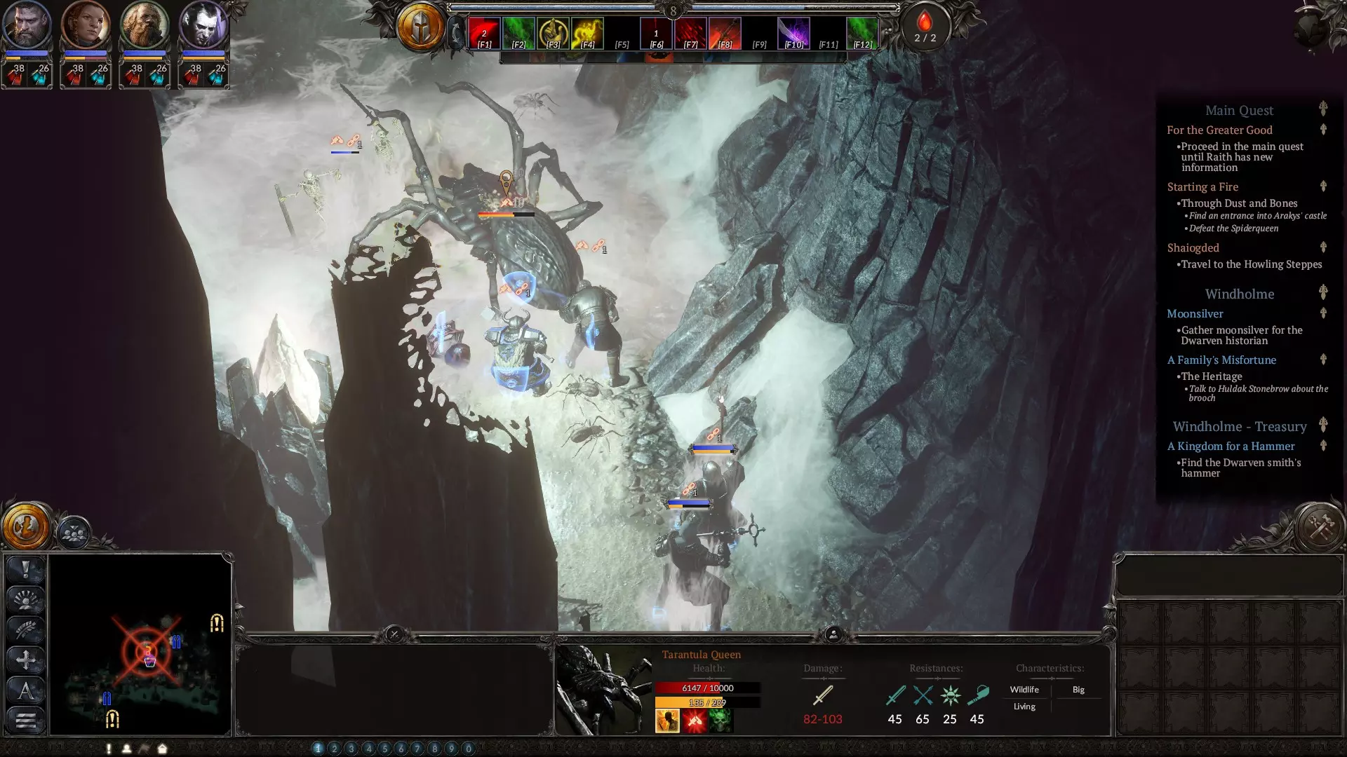 这是一篇关于如何培养你的艾瑞夫,尤其是死灵法师,以在法师圆环难度下拯救世界的指南。 简介 大家好! 我最近发现《咒语力量3:灵魂收割》目前没有已发布的关于如何培养角色以在整个战役中保持高效的指南,所以我打算强调一些要点,希望能让你的游戏过程轻松一些。 需要了解的最重要一点是,这里所写的一切都基于我的个人经验,可能并非对所有玩家都适用或正确。因此,我很乐意看到任何评论或建议,只希望大家不要出言不逊。 其次,我不是母语为英语的人,所以本指南可能存在错误。如果阅读时发现任何错误,我深表歉意。我用亡灵法师流派在圆环法师(CM)难度下通关了游戏,所以我猜这个流派适用于任何难度。 通用战役技巧 首先,我想先分享一些适用于任何队伍和任何艾瑞夫的技巧: 1.亡灵法师和恶魔学者是你最好的伙伴,抱歉了那些喜欢“好人”流派的玩家。在圆环法师难度下,敌人的攻击力非常高,抗性也极高,你会遇到几乎免疫伤害的敌人。因此,你需要亡灵法师来削弱敌人(降低他们30-40%的伤害和力量倍数),以及恶魔学者来弱化他们(降低他们的防御力)。我有元素召唤和光明魔法的流派,确实能重创敌人,但如果没有亡灵-恶魔学者组合,你可能还是会打得相当艰难。光法师也是绝对需要的,因为要治疗,不过这一点比较明显。 下面是与蜘蛛女王的战斗,这场战斗可能有些棘手,因为她相当难缠,还会削弱你的角色。主要战术是用两名近战战士堵住她的去路。我的死灵法师会削弱蜘蛛女王,大幅降低她的伤害输出,召唤骷髅小子作为肉盾,并用虚空箭攻击她。我的队伍里还有一名治疗者。这是你进行任何死灵法师战斗的核心战术。
