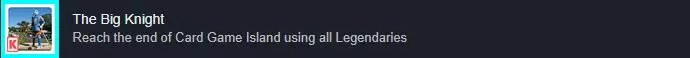 第二烦人的成就。(可能我只是不擅长这个卡牌游戏)但你总共需要击败岛屿6次,每次装备不同的传说卡牌。一旦你用某张卡牌击败岛屿,它旁边就会出现一个奖杯图标。 就这样……你完成了!干得好,希望这对你有帮助~