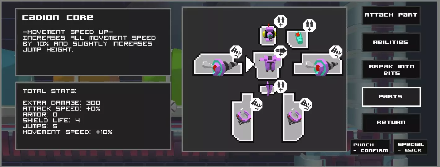 如何抵达一个隐藏极深的秘密 简介 我一直在制作这款游戏的地图,探索每个关卡的每个角落,发现了Team Reptile设置的一个巧妙彩蛋。它的位置非常高,你需要特定的构建才能到达这个区域。 自定义 按照以下图表构建一个Megac。我们需要5次跳跃和4次空中移动能力。核心选项也都能略微增加你的跳跃高度。