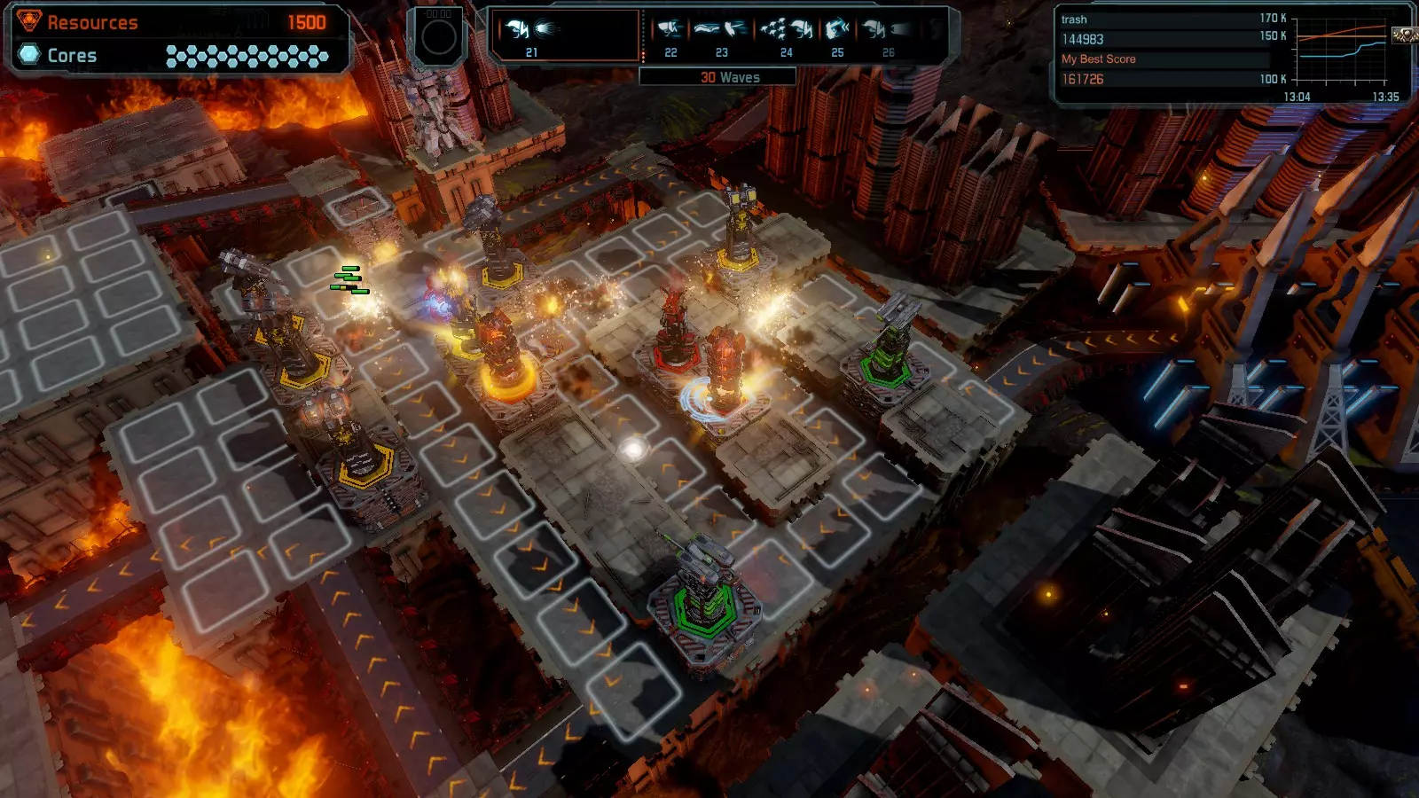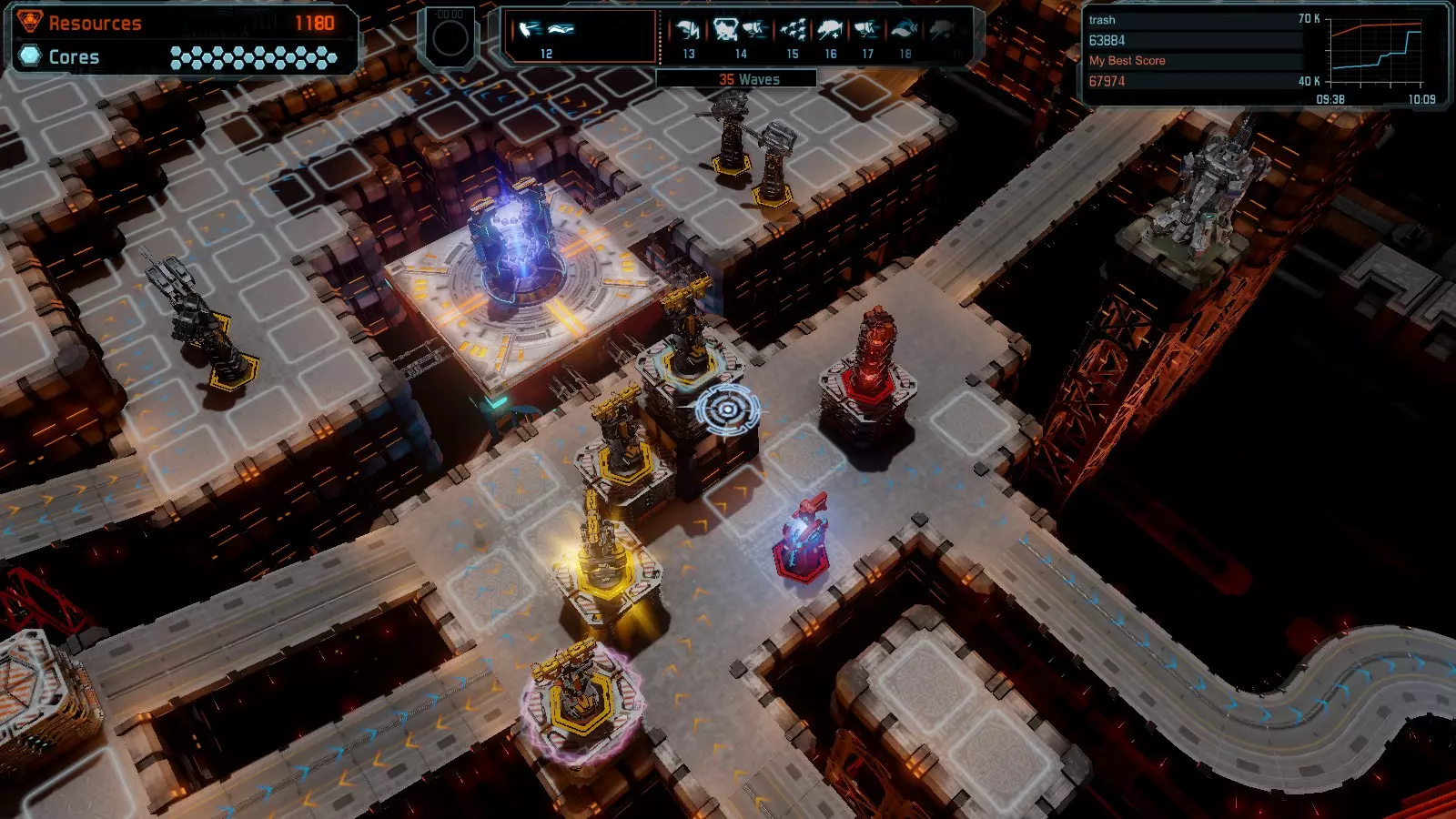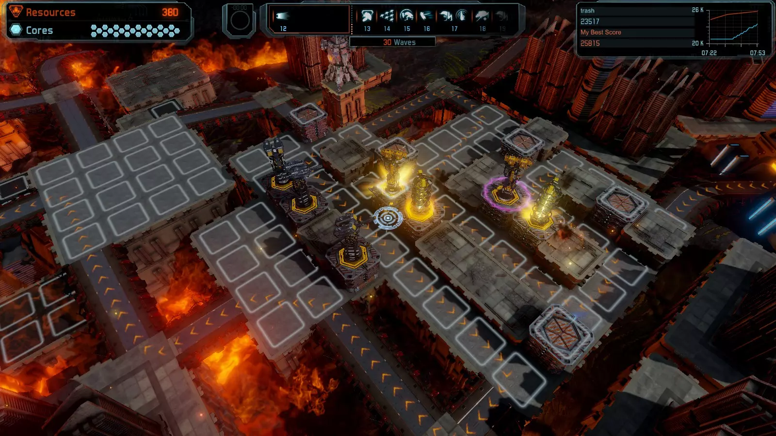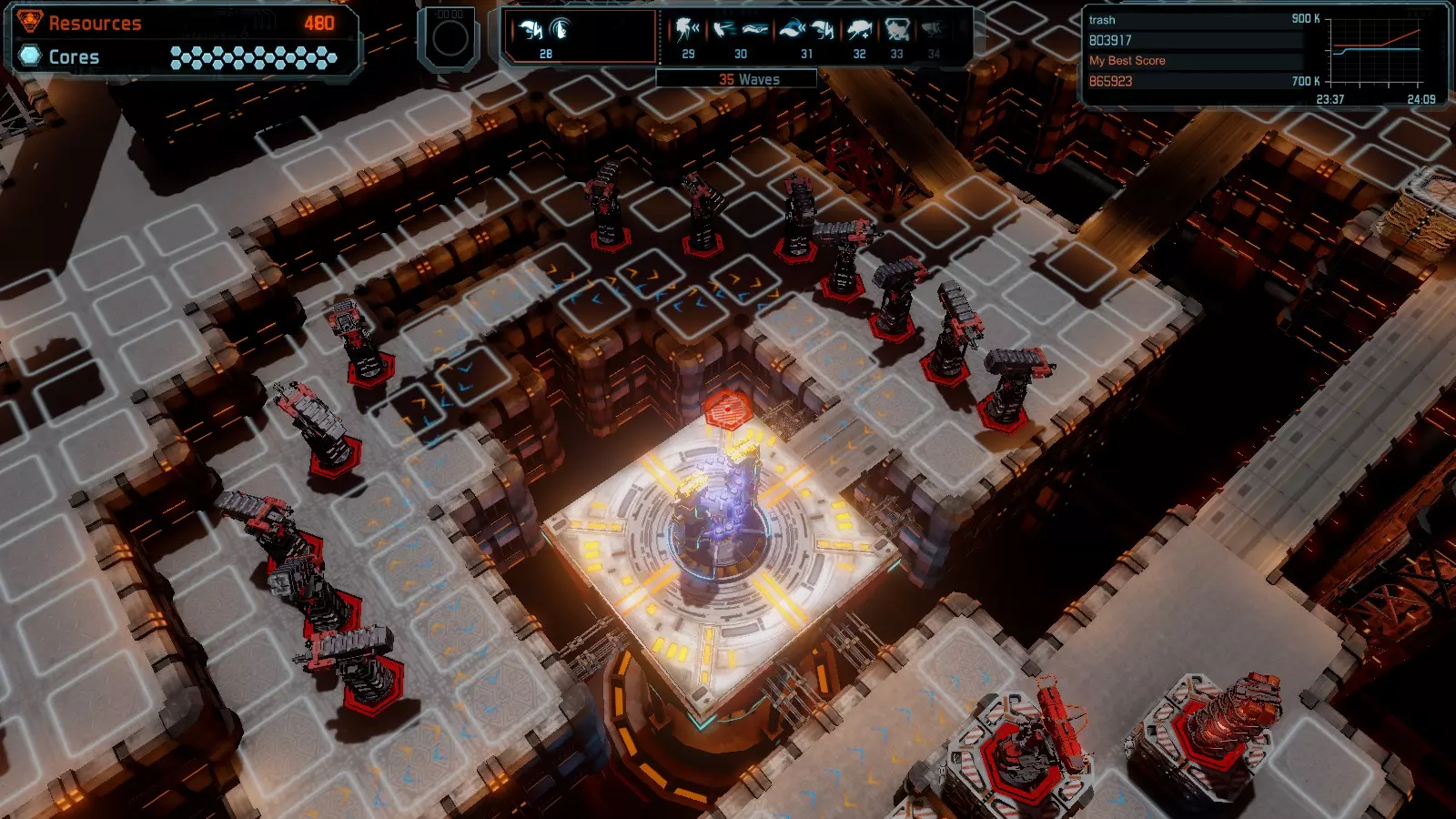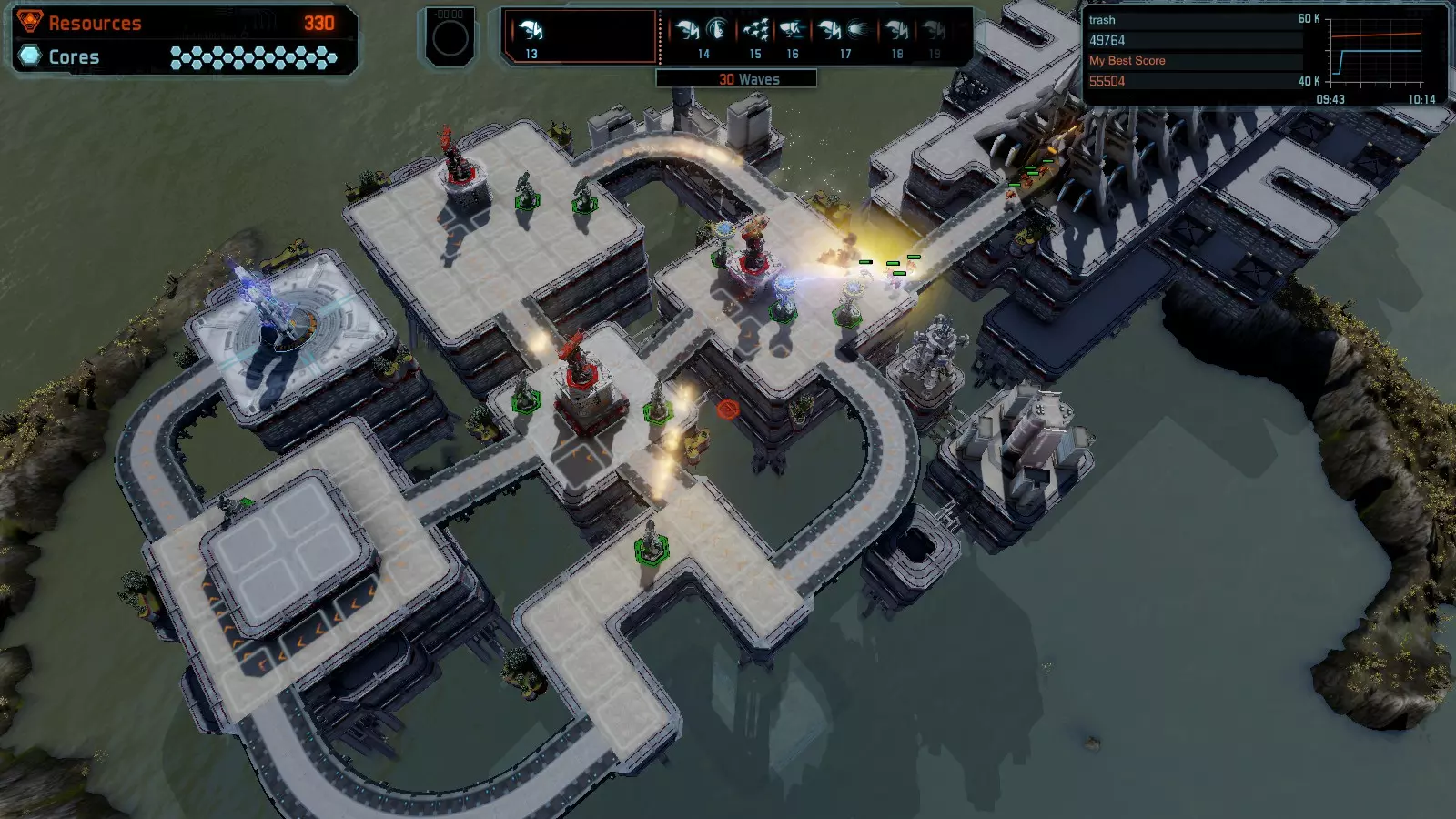 地图08 沸点 本指南介绍如何在开放模式和竞争模式下的简单难度中在此地图获得金牌。 以下所有模式均可使用此布局获得金牌: 固定资源 焦点 满载 冰封核心 练习 建造方案: 1个助推器作为阻挡物 1个红色时间扭曲塔 2个助推器搭配2个红色震荡塔,其中1个震荡塔配备干扰器,1个配备得分加成 7个助推器搭配7个红色加农炮 2个助推器搭配2个红色激光塔,其中1个激光塔配备得分加成,1个配备过载