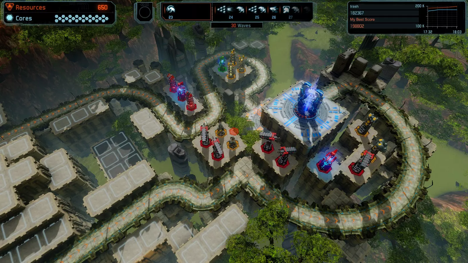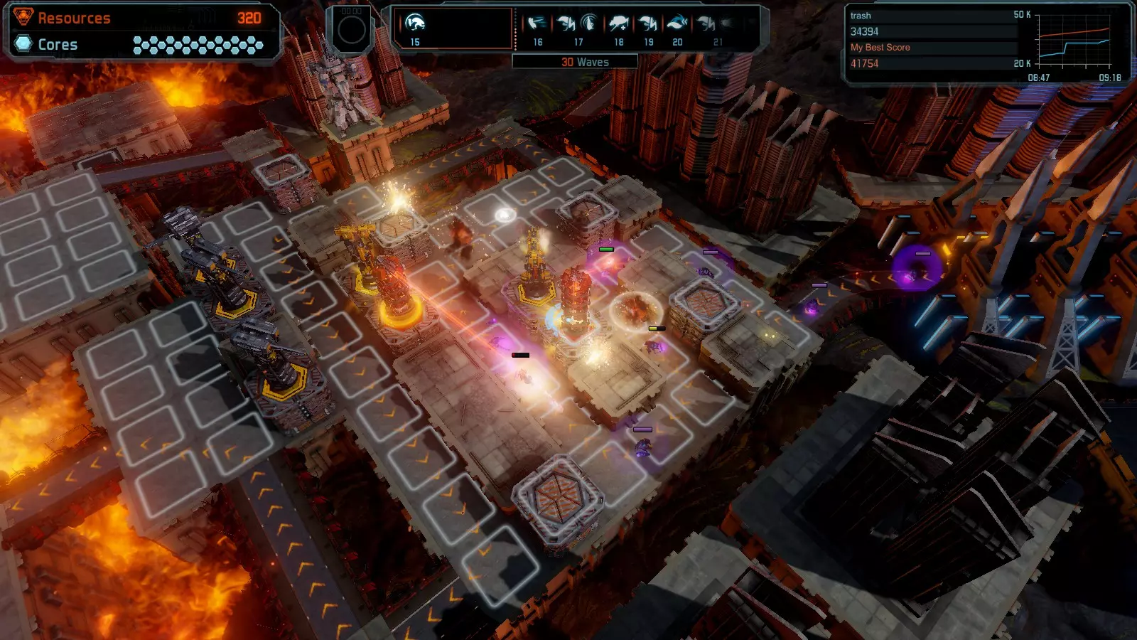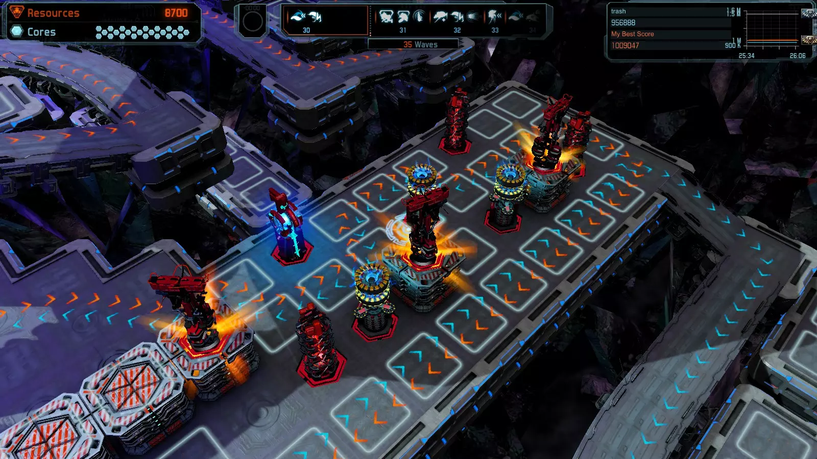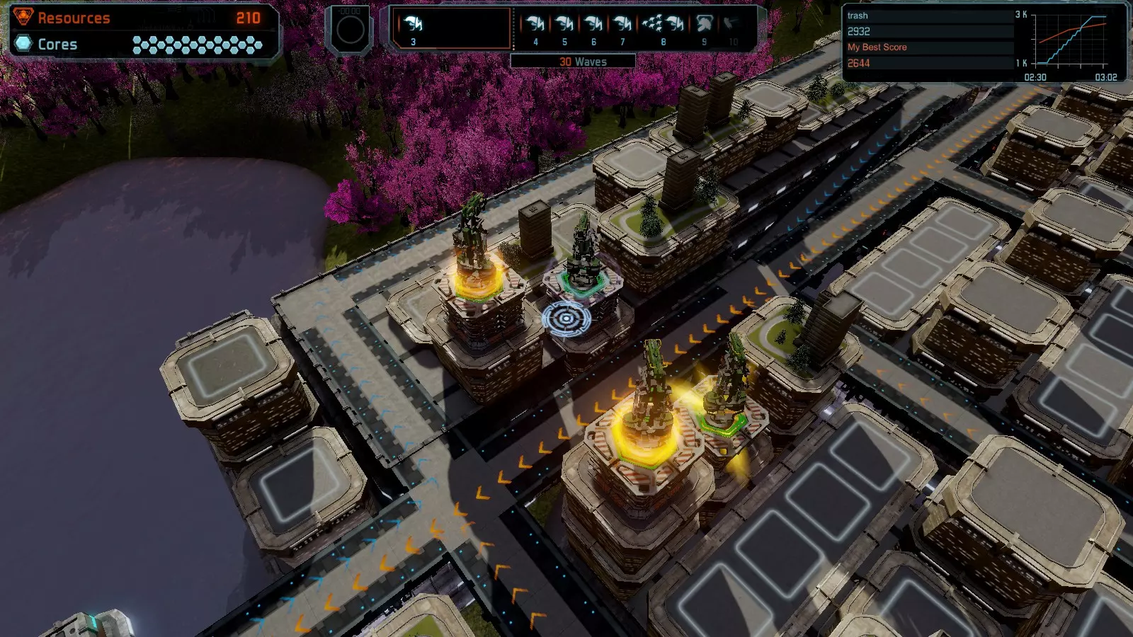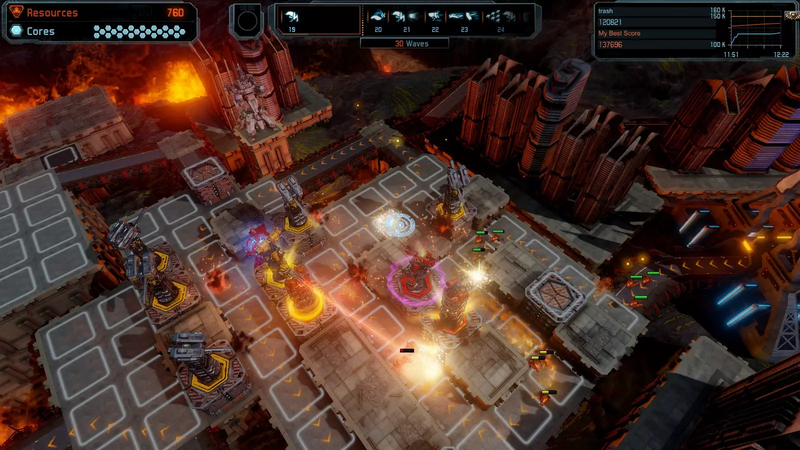 地图08 沸点 本指南介绍如何在开放模式和竞争模式下的简单难度中在此地图获得金牌。 以下所有模式均可使用此布局获得金牌: 固定资源 焦点 满载 冰封核心 练习 建造方案: 1个助推器作为阻挡物 1个红色时间扭曲塔 2个助推器搭配2个红色震荡塔,其中1个震荡塔配备干扰器,1个配备得分加成 7个助推器搭配7个红色加农炮 2个助推器搭配2个红色激光塔,其中1个激光塔配备得分加成,1个配备过载