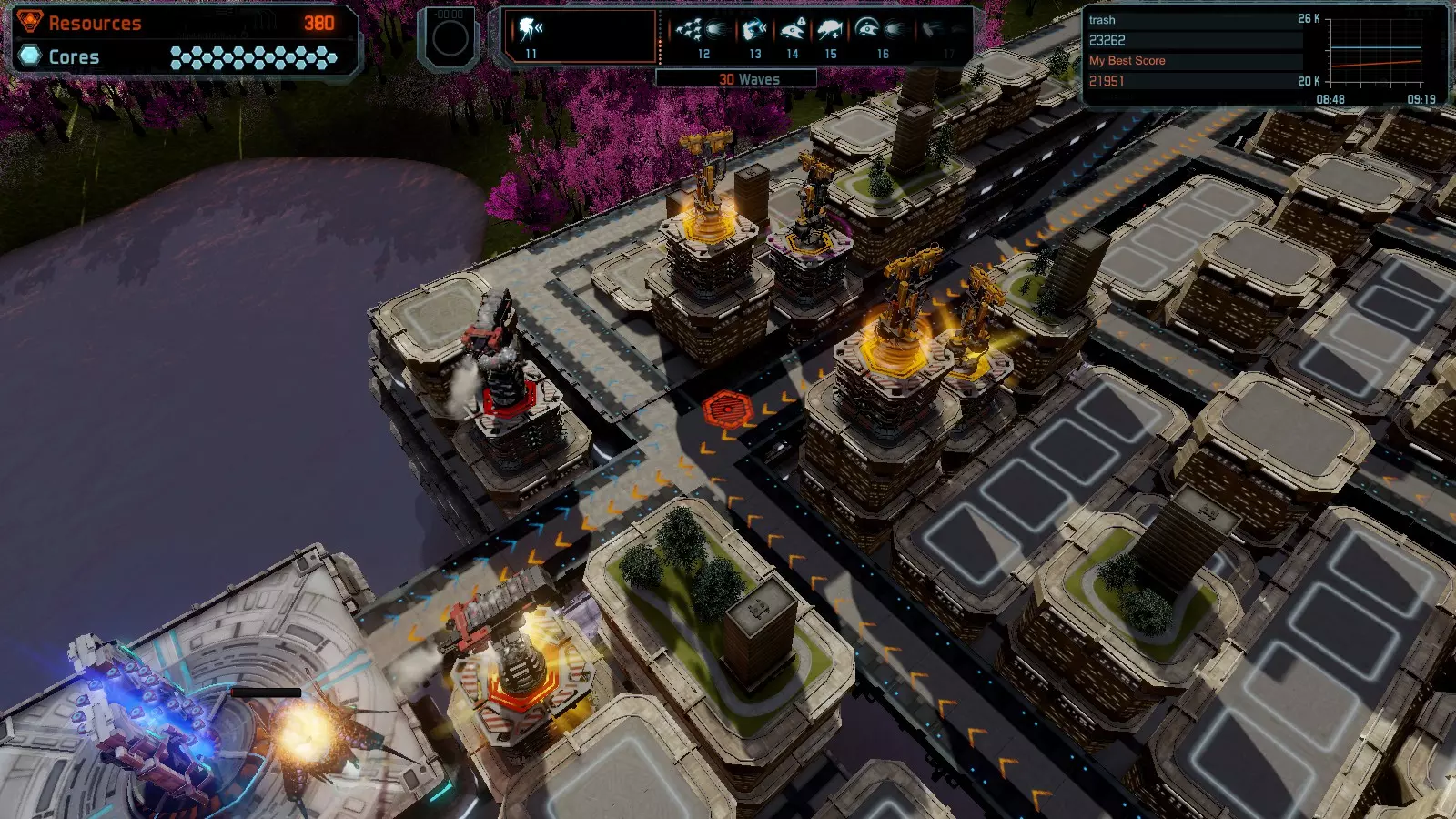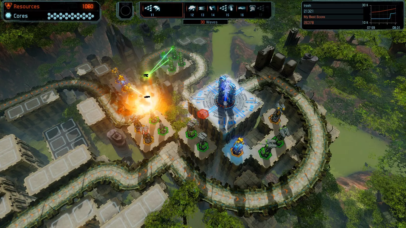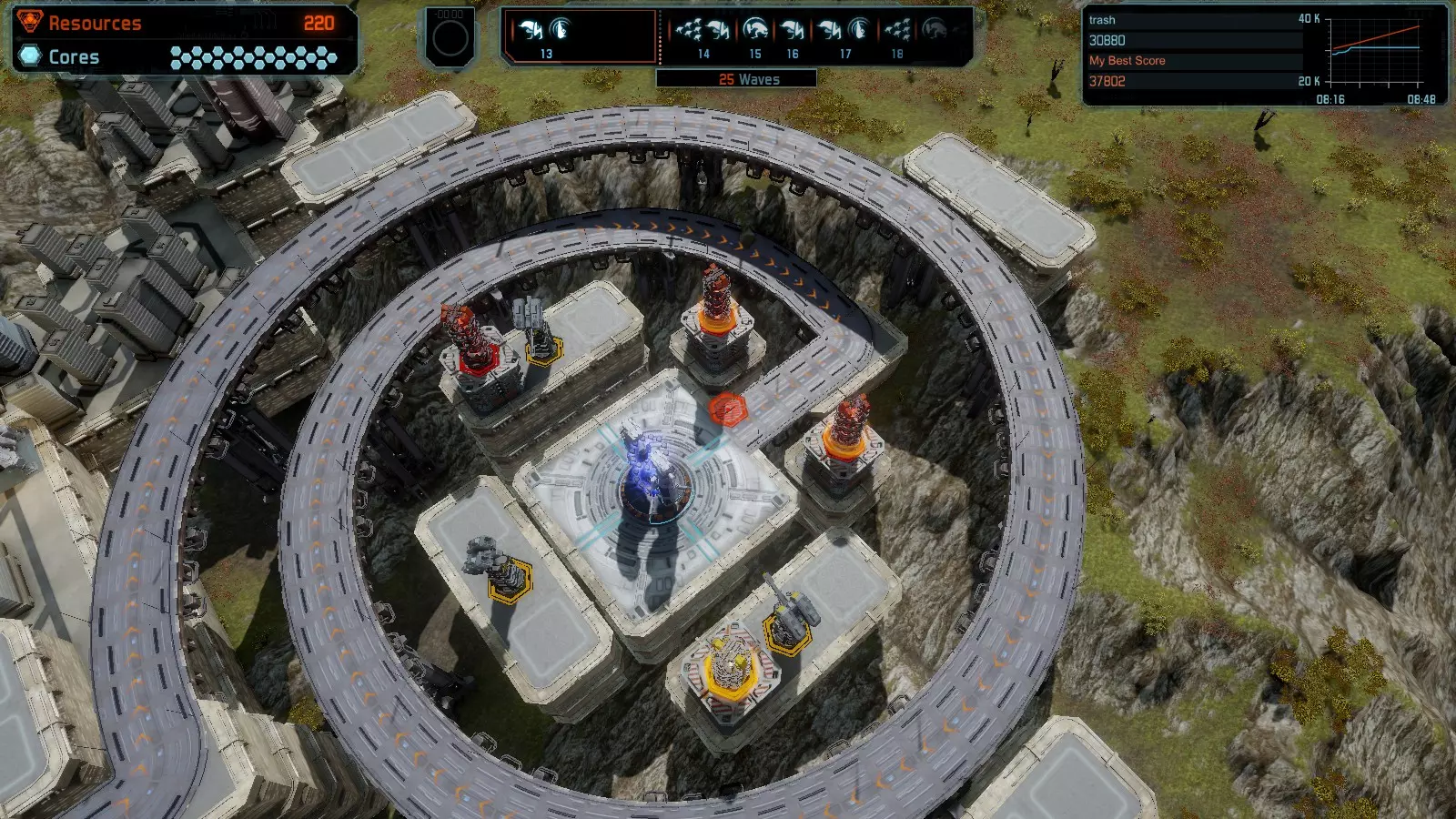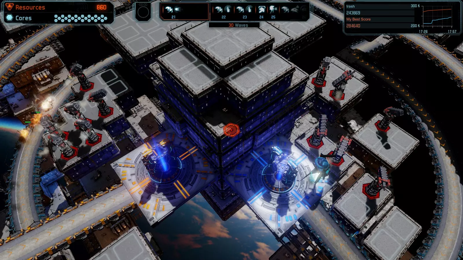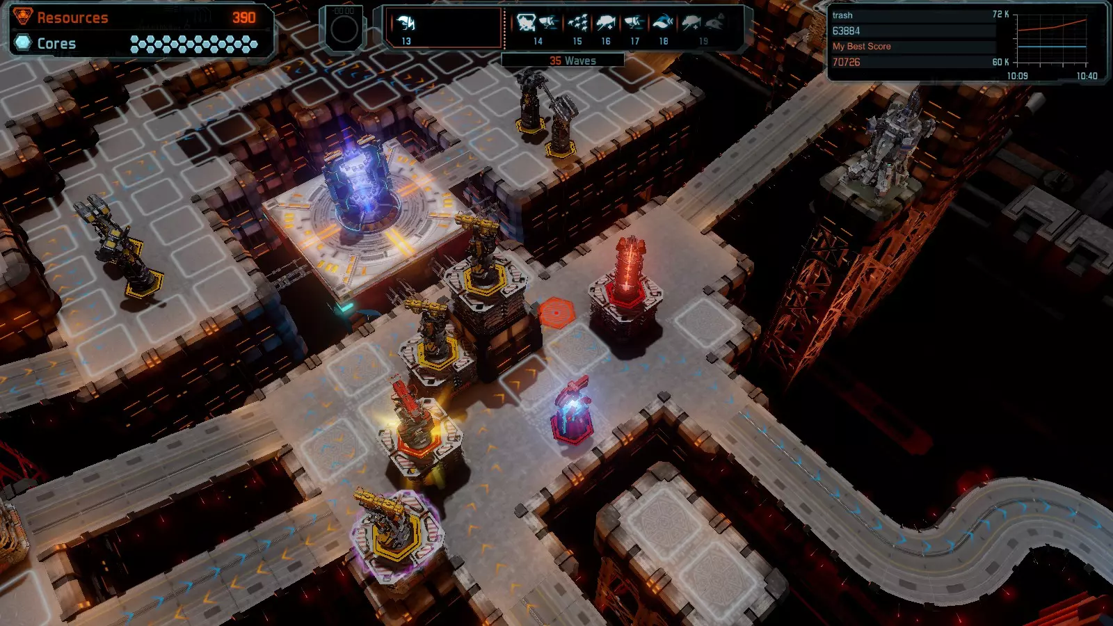 地图08 沸点 本指南介绍如何在开放模式和竞争模式下的简单难度中在此地图获得金牌。 以下所有模式均可使用此布局获得金牌: 固定资源 焦点 满载 冰封核心 练习 建造方案: 1个助推器作为阻挡物 1个红色时间扭曲塔 2个助推器搭配2个红色震荡塔,其中1个震荡塔配备干扰器,1个配备得分加成 7个助推器搭配7个红色加农炮 2个助推器搭配2个红色激光塔,其中1个激光塔配备得分加成,1个配备过载