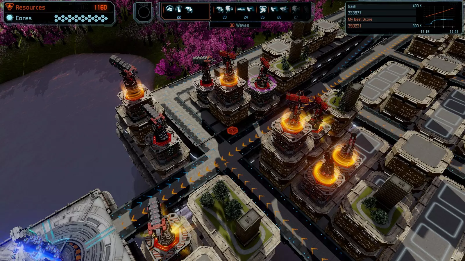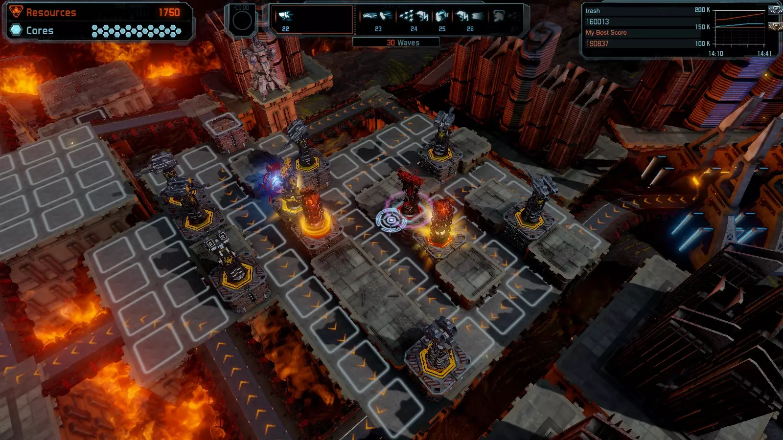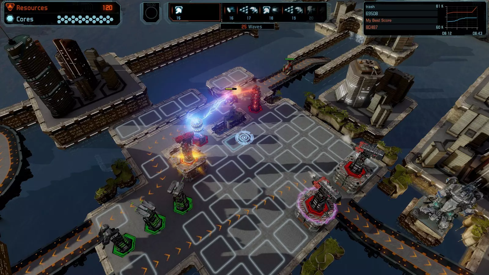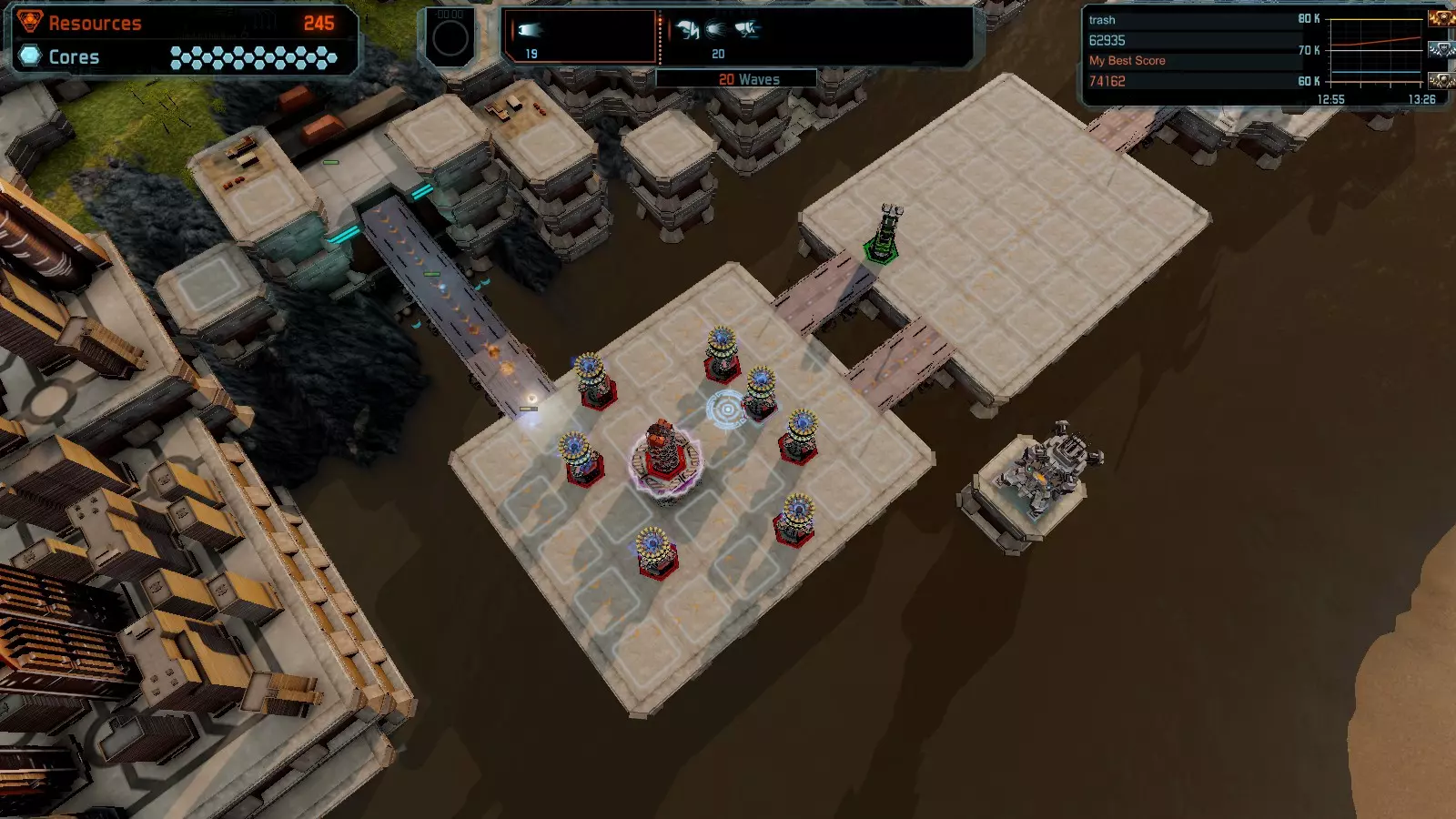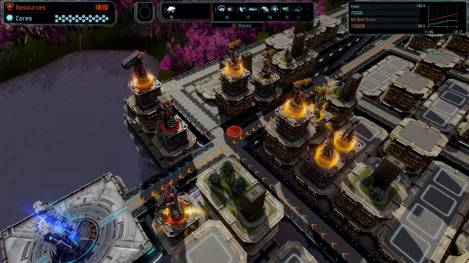 第20关 反击 本指南将帮助你在开放模式和竞争模式下以简单难度在该地图获得金牌。 此布局适用于以下所有模式并可获得金牌: 固定资源 电力中断 焦点 满载 练习 建造方案: 9个增强塔作为障碍物 1个红色时间塔 3个增强塔搭配3个红色震荡塔,均配备得分增强 4个红色加农炮 3个红色激光塔 3个红色特斯拉塔