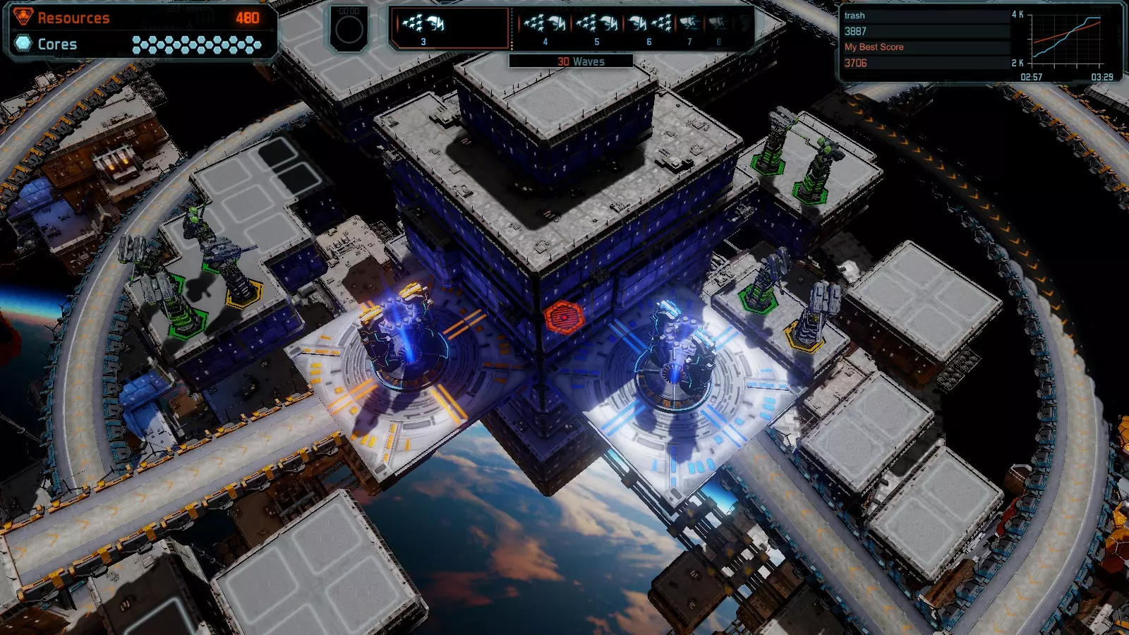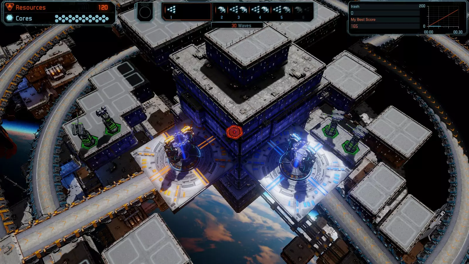 地图03 悬浮 本指南介绍如何在简单难度的开放模式和竞争模式下在此地图获得金牌。 此布局可在以下所有模式中获得金牌: 固定资源 电力中断 焦点 有限塔楼 满载 冰封核心 练习 建造方案 3门红色加农炮 4个增幅器搭配4门红色激光塔,全部超载